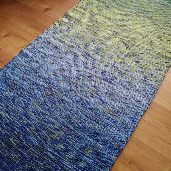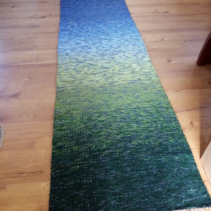Krāsu pārejās austs grīdas celiņš veidos dabas gleznu Jūsu interjerā. Diegu materiāli otrreiz pārstrādāti, tāpēc nemainīs formu un krāsu, saudzīgi mazgājot. Izmērs : 2,47 m x 0,73 m.