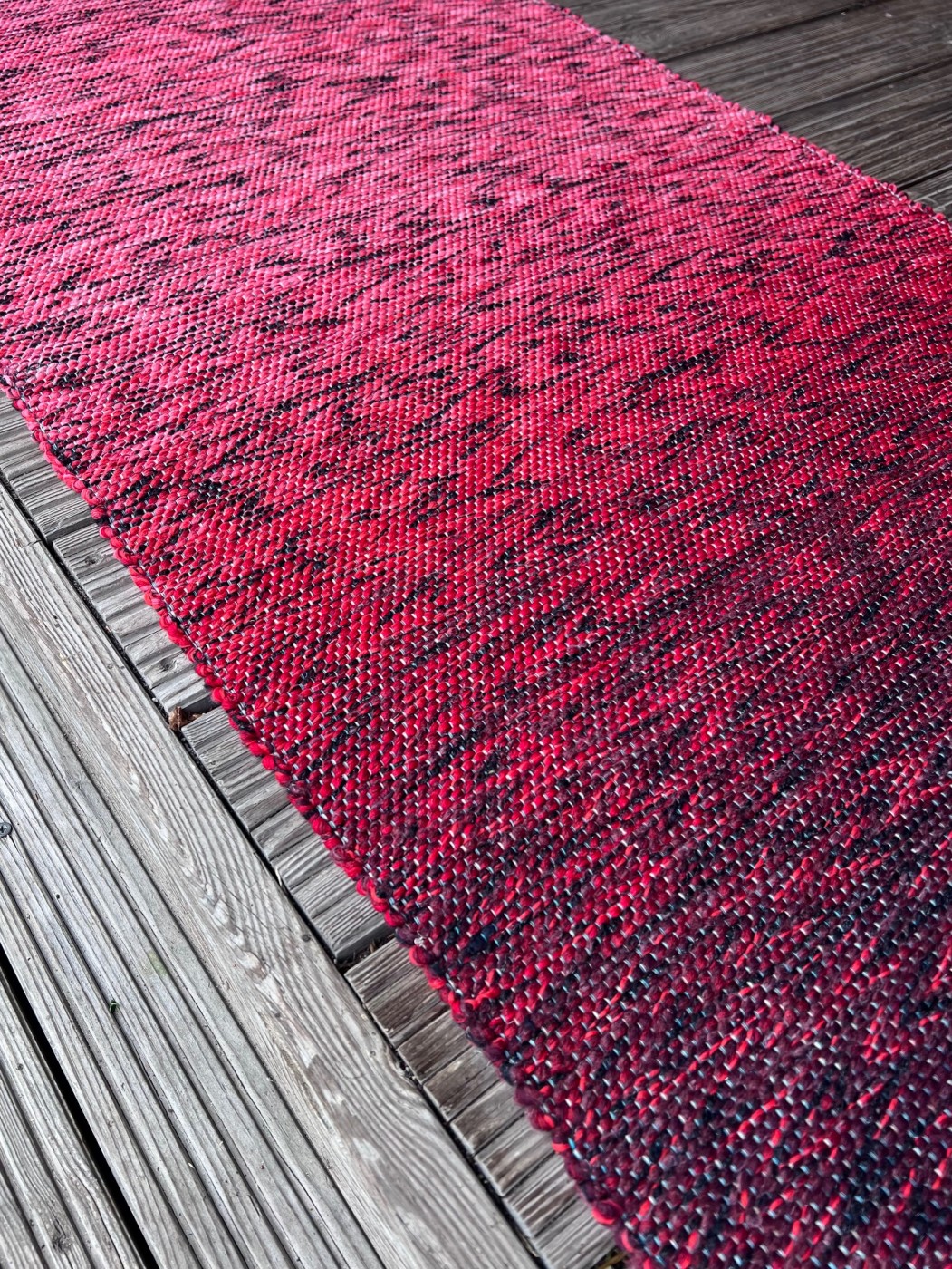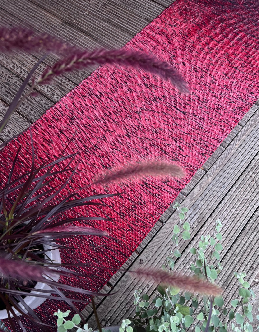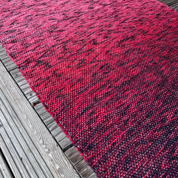 Koši sarkans grīdas celiņš no otrreiz pārstrādātas dzijas kokvilnas - linu velkos. Izmantojams arī kā dīvāna pārklājs. #grīdceliņi #austi_grīdas_celiņi #roku_darbs #mājas_tekstils #lupatiņu_paklāji #zero_waste #dizaina_paklāji #otrreizējie_materiali