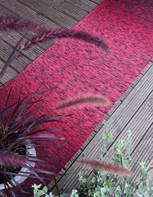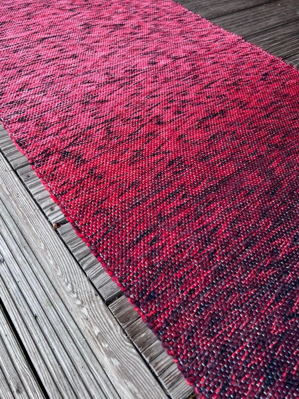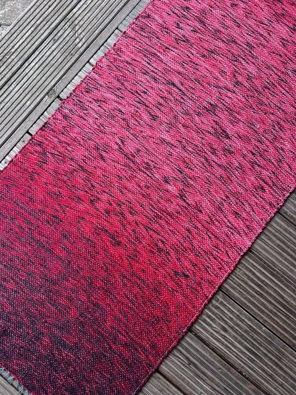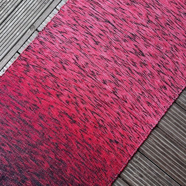Krāsu pārejās austs grīdas celiņš. Diegu materiāli otrreiz pārstrādāti, tāpēc nemainīs formu un krāsu, saudzīgi mazgājot. Izmērs : 2,11 m x 0,73 m.