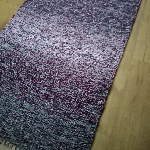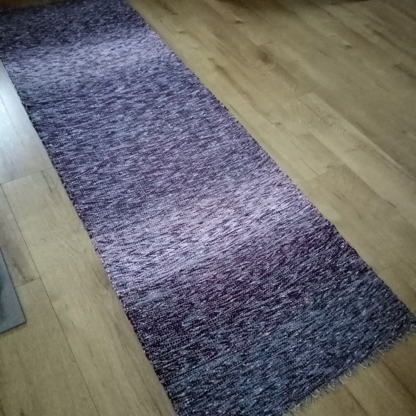 Ceriņkrāsu pārejās austs grīdas celiņš jūsu interjeram. Diegu materiāli otrreiz pārstrādāti, tāpēc nemainīs formu un krāsu, saudzīgi mazgājot. Izmērs : 2,26 m x 0,73 m. Var izmantot arī kā dīvāna pārklāju, labi piegulst mēbeļaudumam, nekrokojas.