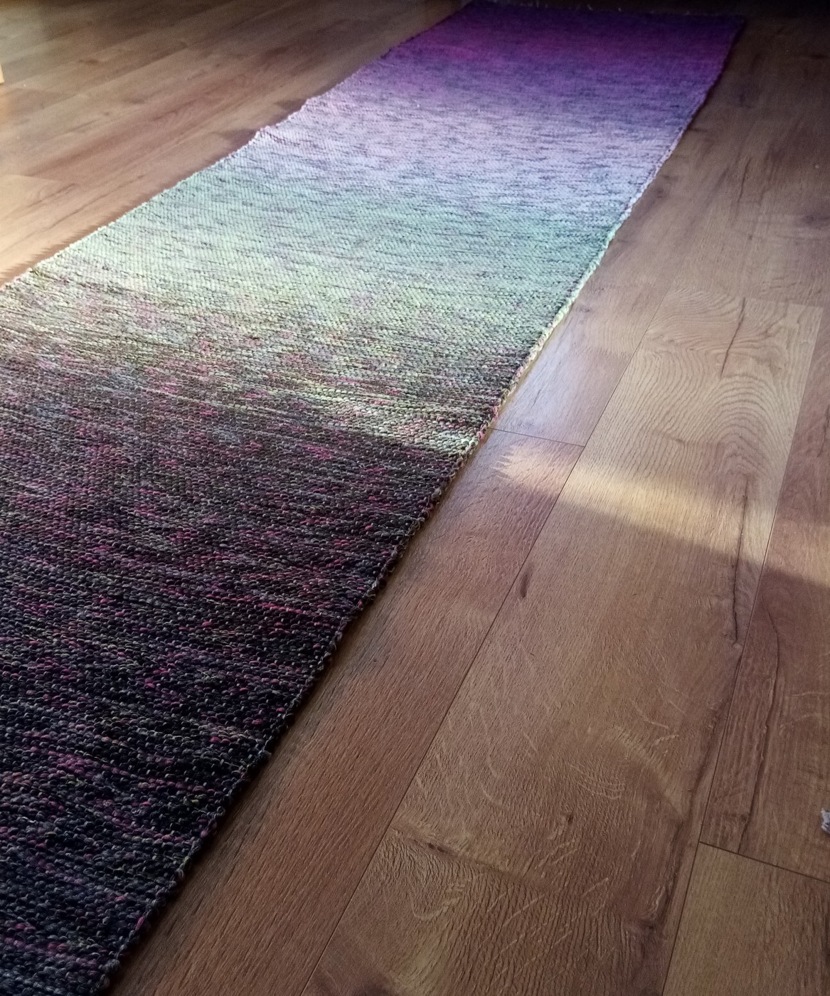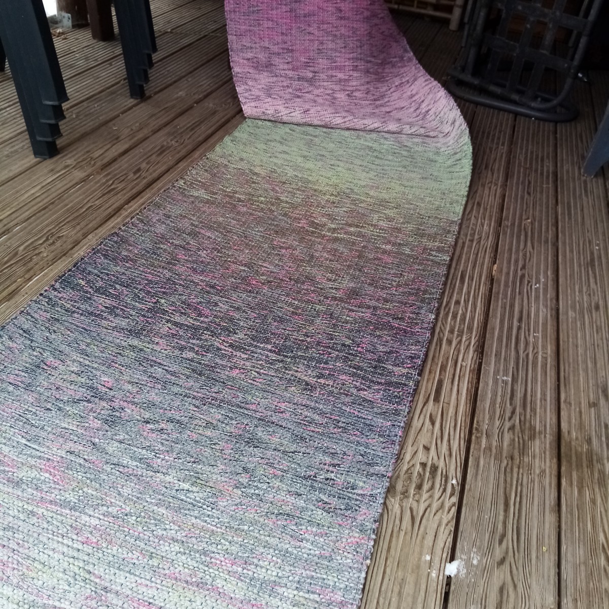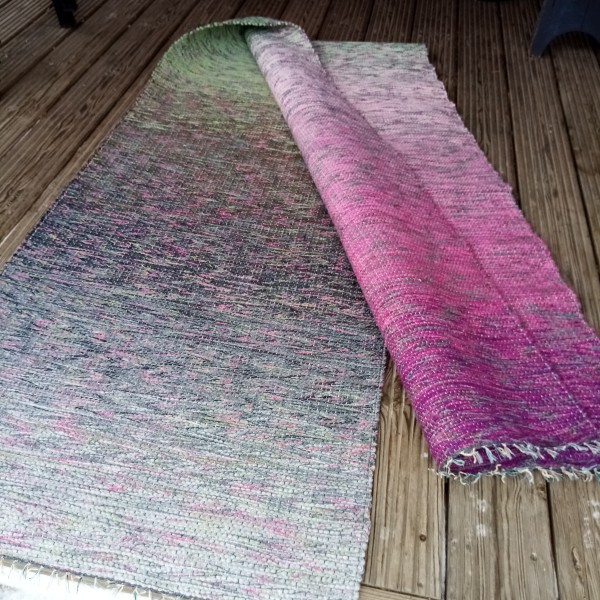 Krāsu pārejās austs grīdas celiņš veidos dabas gleznu Jūsu interjerā. Diegu materiāli otrreiz pārstrādāti, tāpēc nemainīs formu un krāsu, saudzīgi mazgājot. Izmērs : 3,18 m x 0,73 m.