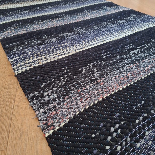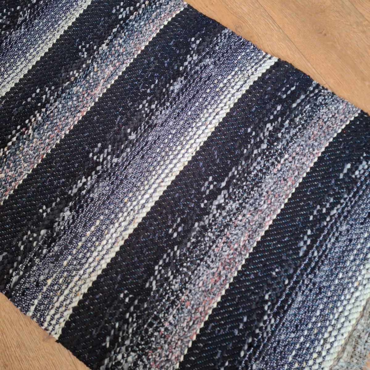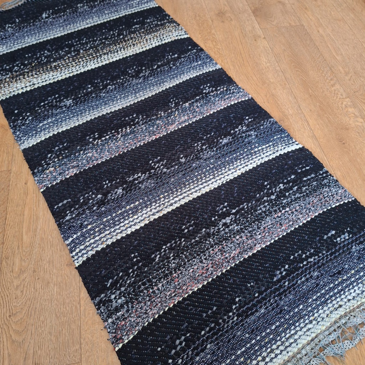 No pārstrādāta tekstila kokvilnas-linu velkos austs paklājs- grīdas celiņš toņu pāreju joslās. Māksliniecisks un praktisks akcents jūsu mājās. 0.66m x 1.44m. Praktisks #lupatu_paklajs #grīdas-celiņš #austs-grīdceliņš . Iespējams nosūtīt ar omnivu vai pēc vienošanās.