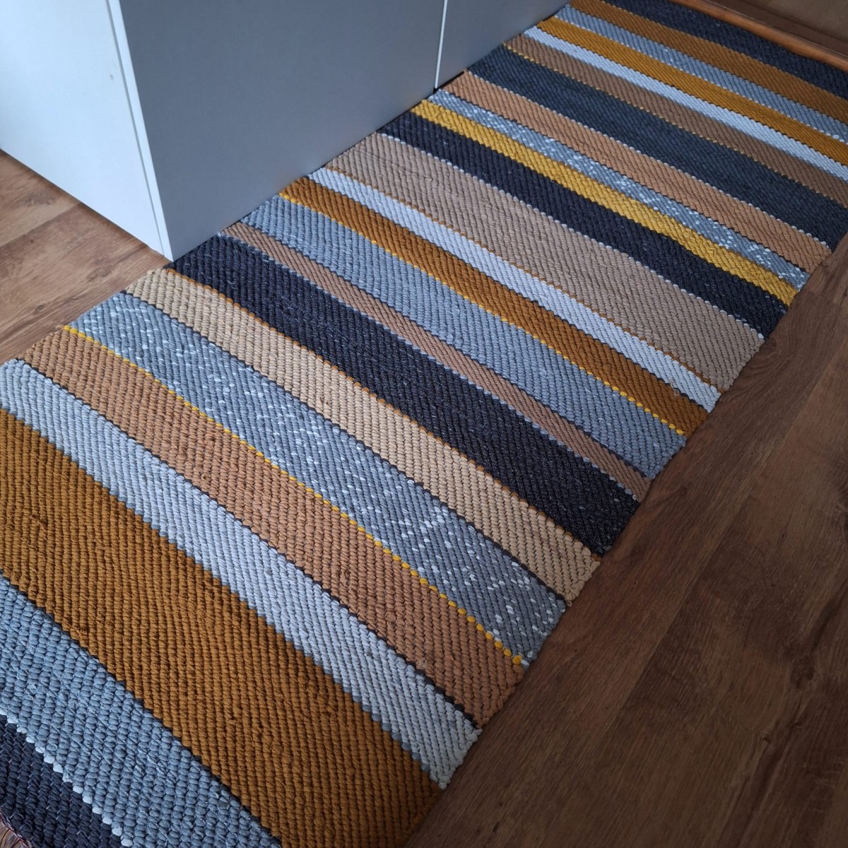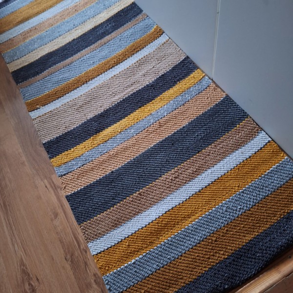 No pārstrādāta tekstila kokvilnas-linu velkos austs paklājs- grīdas celiņš. Praktisks #lupatu_paklājs #grīdas-celiņš. Iespējams nosūtīt ar omnivu vai pēc vienošanās.