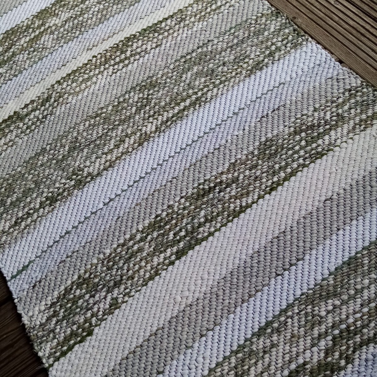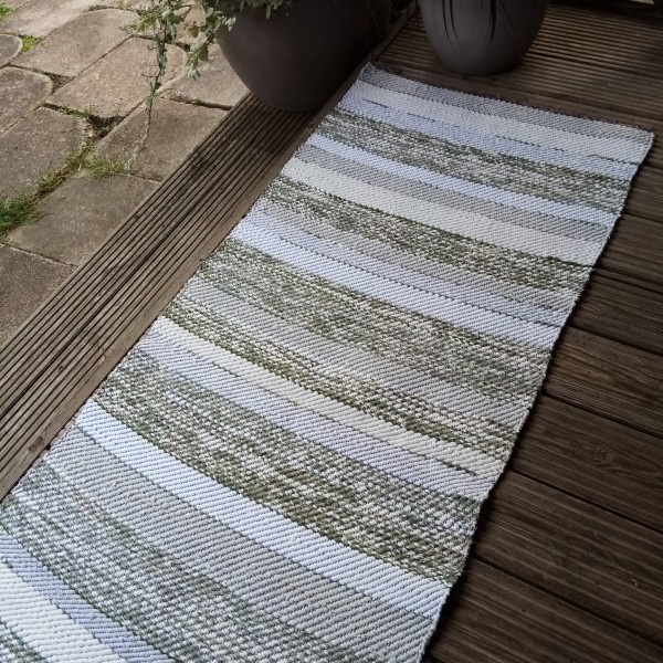No pārstrādāta tekstila kokvilnas-linu velkos austs paklājs- grīdas celiņš . Balti- raibā toņu gammā. Garums 1.75m, platums 0.68m. Praktisks #lupatu_paklājs #grīdas-celiņš. Iespējams nosūtīt ar omnivu vai pēc vienošanās. #eleganti_gridcelini_paklaji #austi_paklaji #lupatu_paklaji_gridcelini
