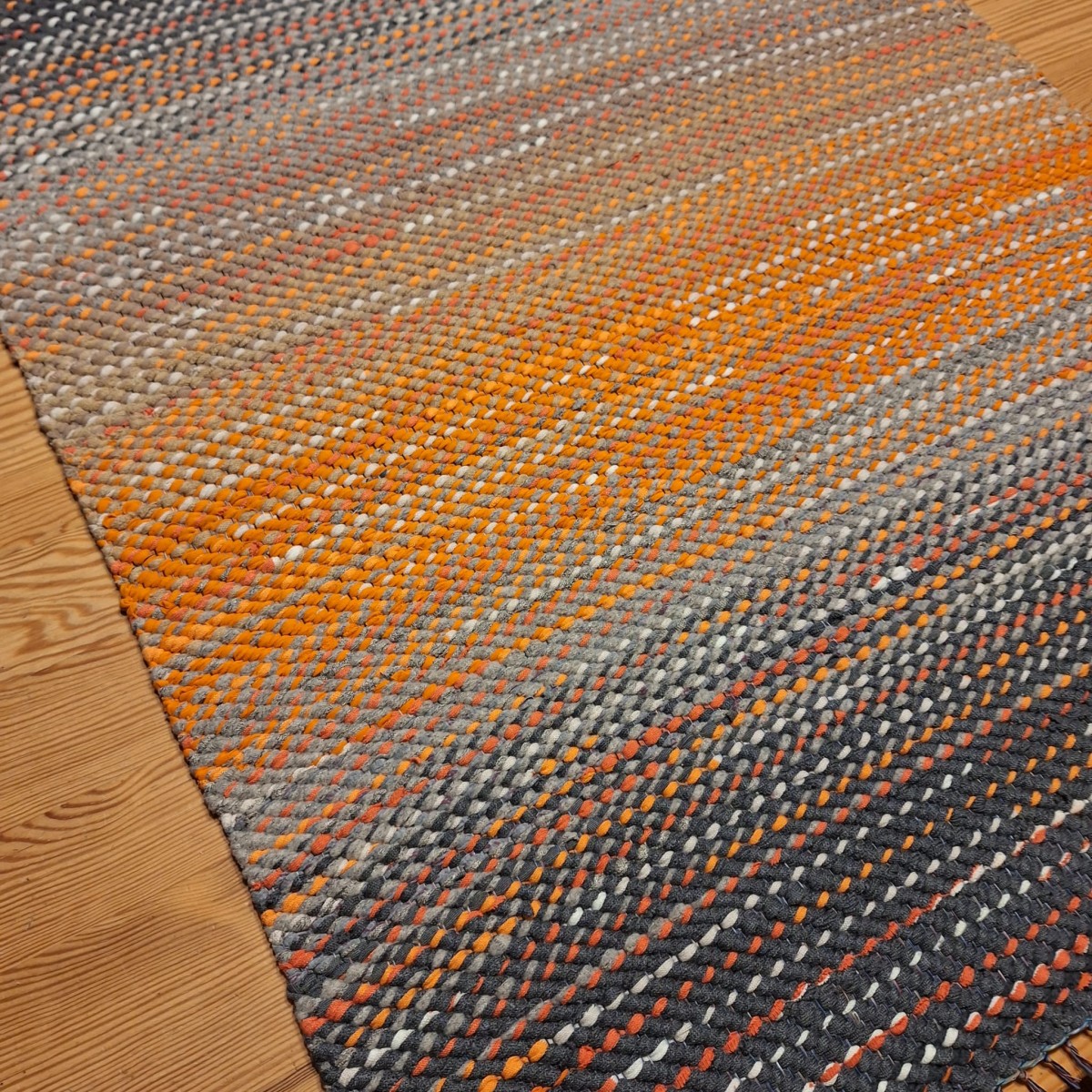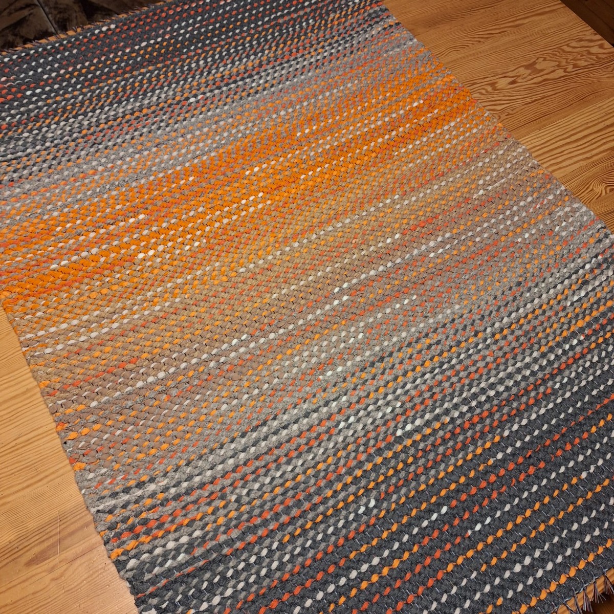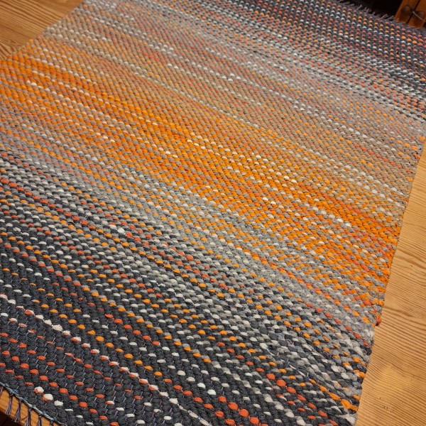 No pārstrādāta tekstila kokvilnas-linu velkos austi neliels paklājiņš . 0.97 x 0.69m.Cena 26 eiro. Praktisks #lupatu_paklājs #grīdas-celiņš. Iespējams nosūtīt ar omnivu vai pēc vienošanās.
