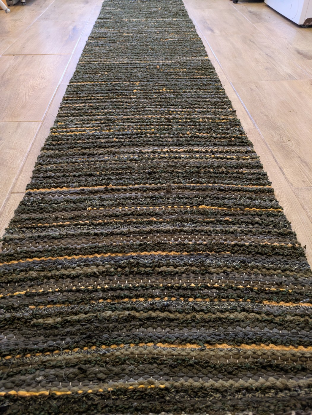 Šaurs un garš austs paklājs ,,gailenītes sūnās" , izmērs-53 cm x 247 cm