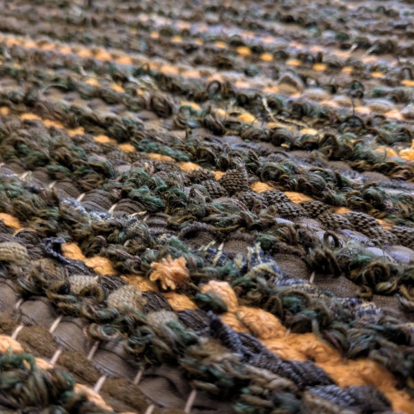 Audos ar rokām grieztas tekstillentes no dažādiem lietotiem apģērbiem un frotē aukliņas , kas piedod mīkstumu un faktūru - krāsu noturība garantēta.