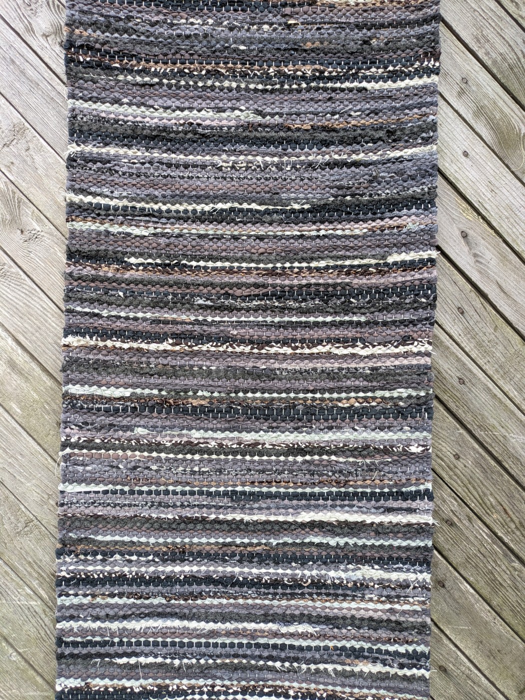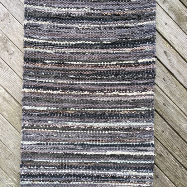 Šaurs un garš austs paklājs pelēki melnos toņos, izmērs-51cm x 224 cm