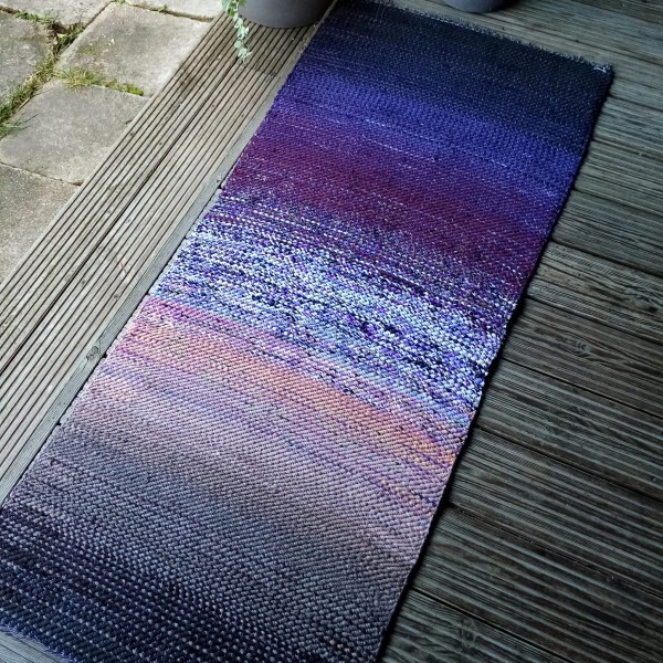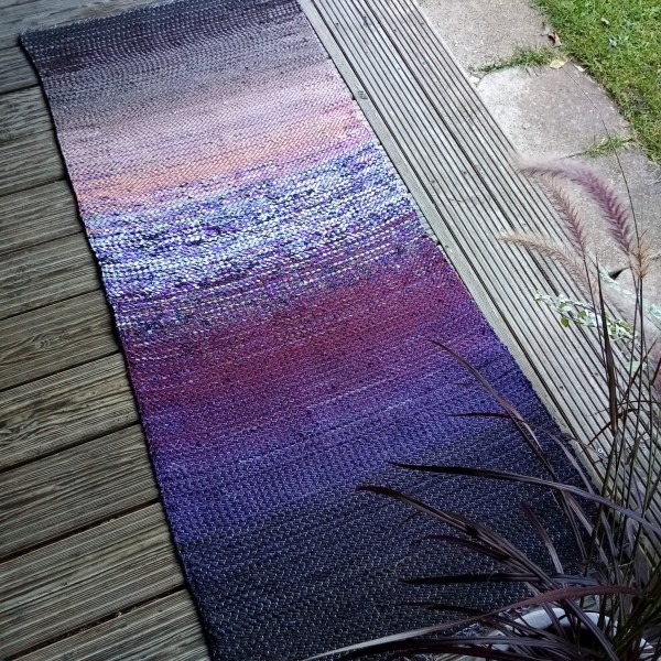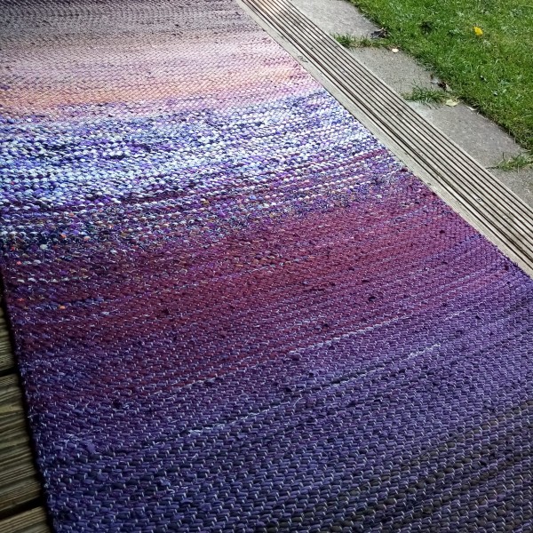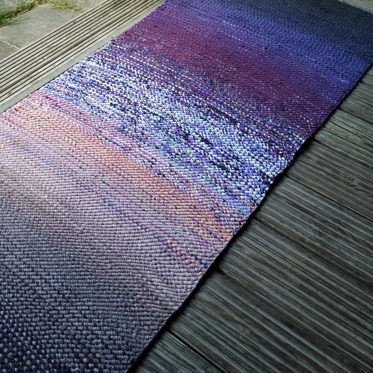 No pārstrādāta tekstila kokvilnas-linu velkos austs paklājs- grīdas celiņš brūngani- ceriņainos toņos. Dabā violetais nav tik izteikts. Praktisks #lupatu_paklājs #grīdas-celiņš. Iespējams nosūtīt ar omnivu vai pēc vienošanās.