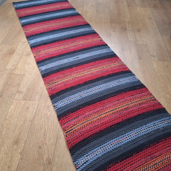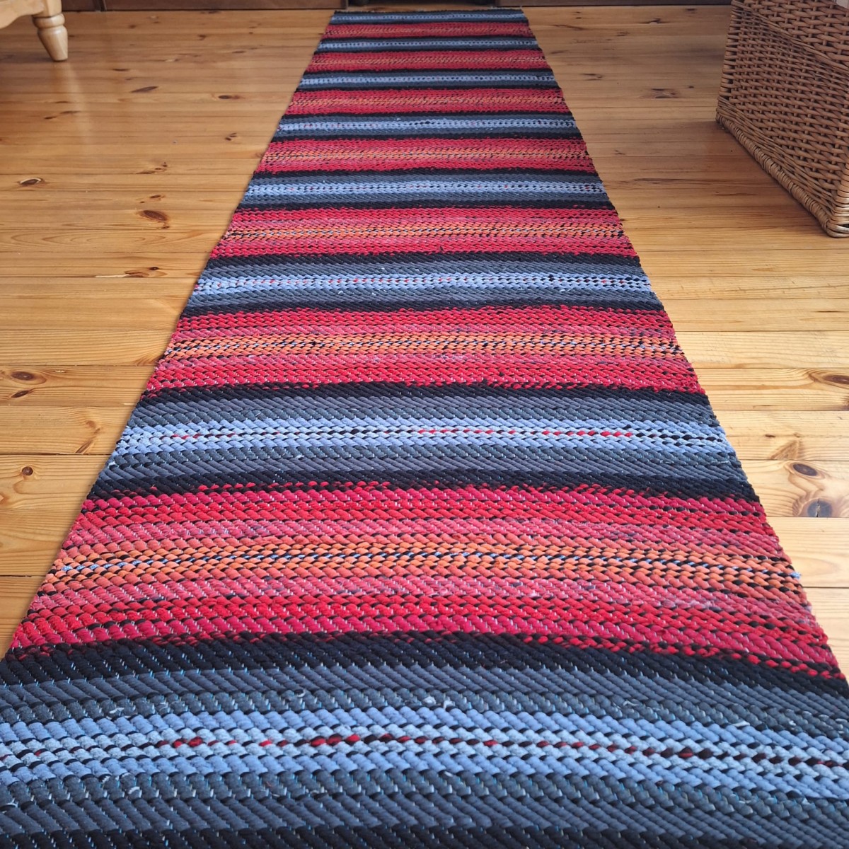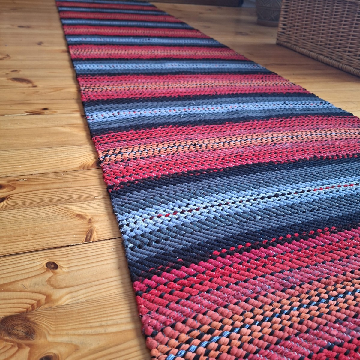 No pārstrādāta tekstila kokvilnas-linu velkos austs garš paklājs- grīdas celiņš košās krāsu pārejās. Praktisks #lupatu_paklajs #grīdas-celiņš. Iespējams nosūtīt ar omnivu vai pēc vienošanās.
