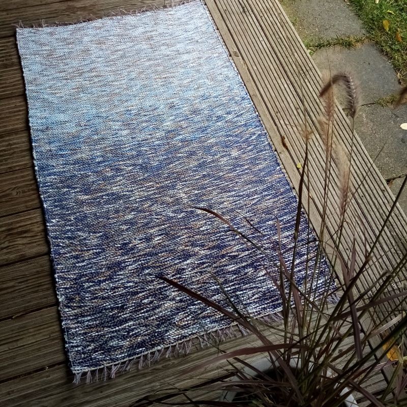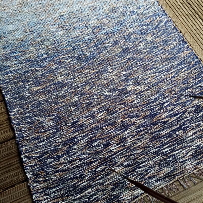Paklājiņš no pārstrādātiem diegiem un efektdzijas kokvilnas velkos. Izmērs : 1,24 m x 0,73 m. Var saudzīgi mazgāt. #grīdceliņi #austi_grīdas_celiņi #roku_darbs #mājas_tekstils #lupatiņu_paklāji #zero_waste #dizaina_paklāji #otrreizējie_materiali