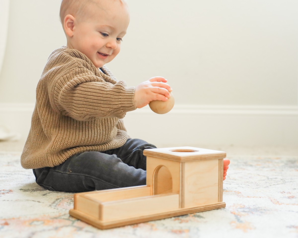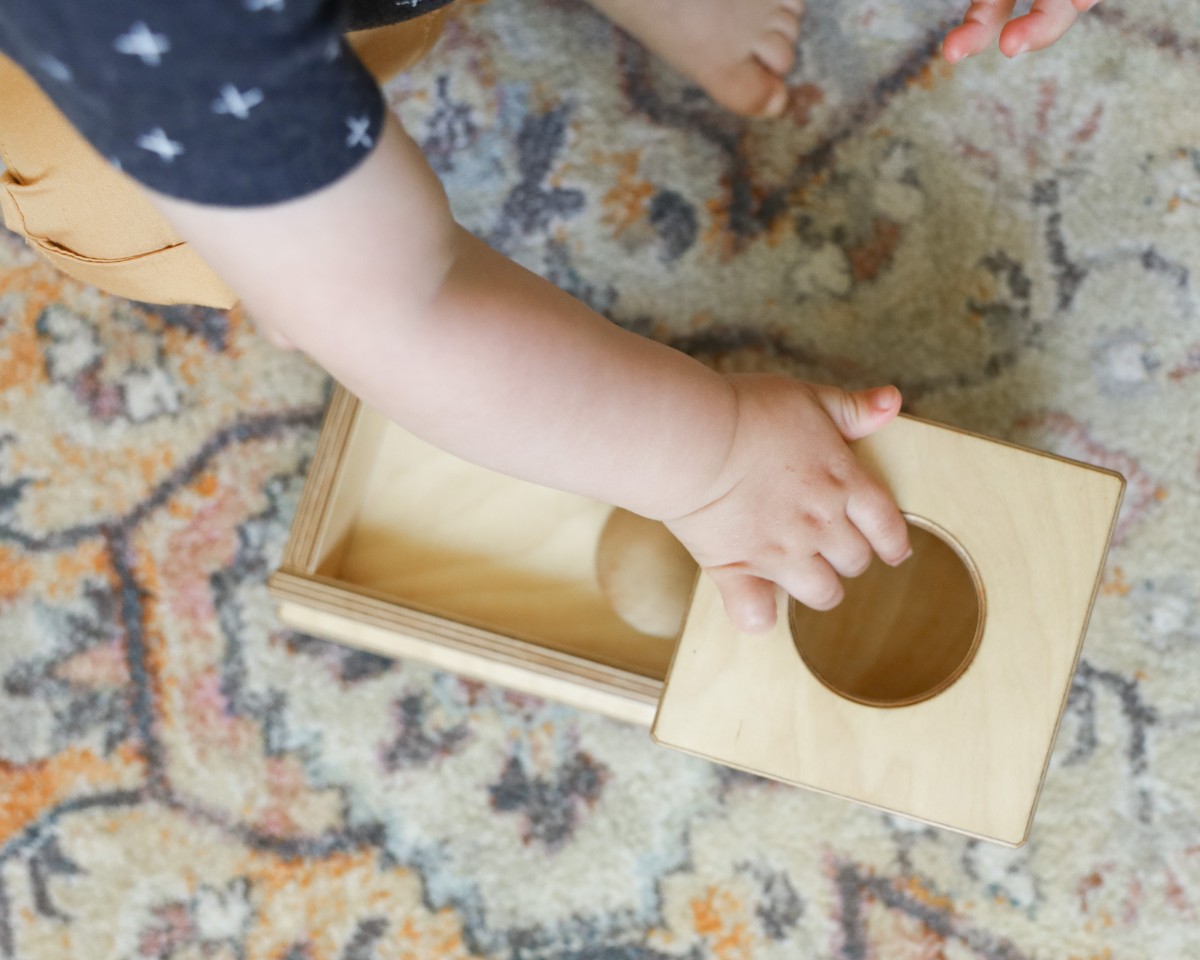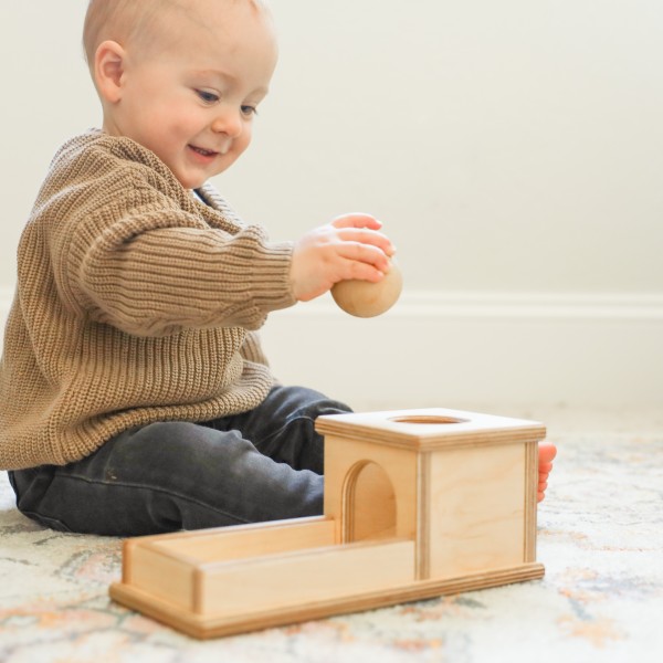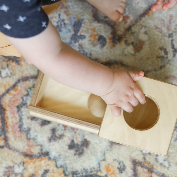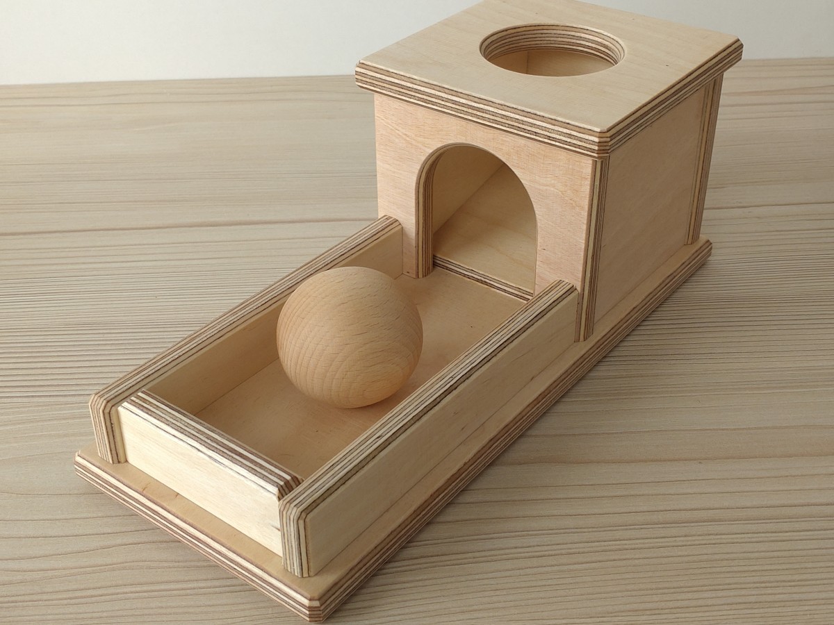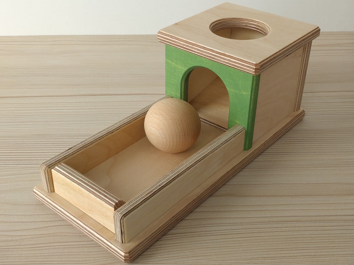 Objektu pastÄvÄ«bas kaste ir klasisks Montessori materiÄls, kas plaÅ”i tiek izmantots zÄ«daiÅu un mazuļu attÄ«stÄ«bas vidÄ. TÄ paredzÄta bÄrniem, kuri jau spÄj patstÄvÄ«gi sÄdÄt.
