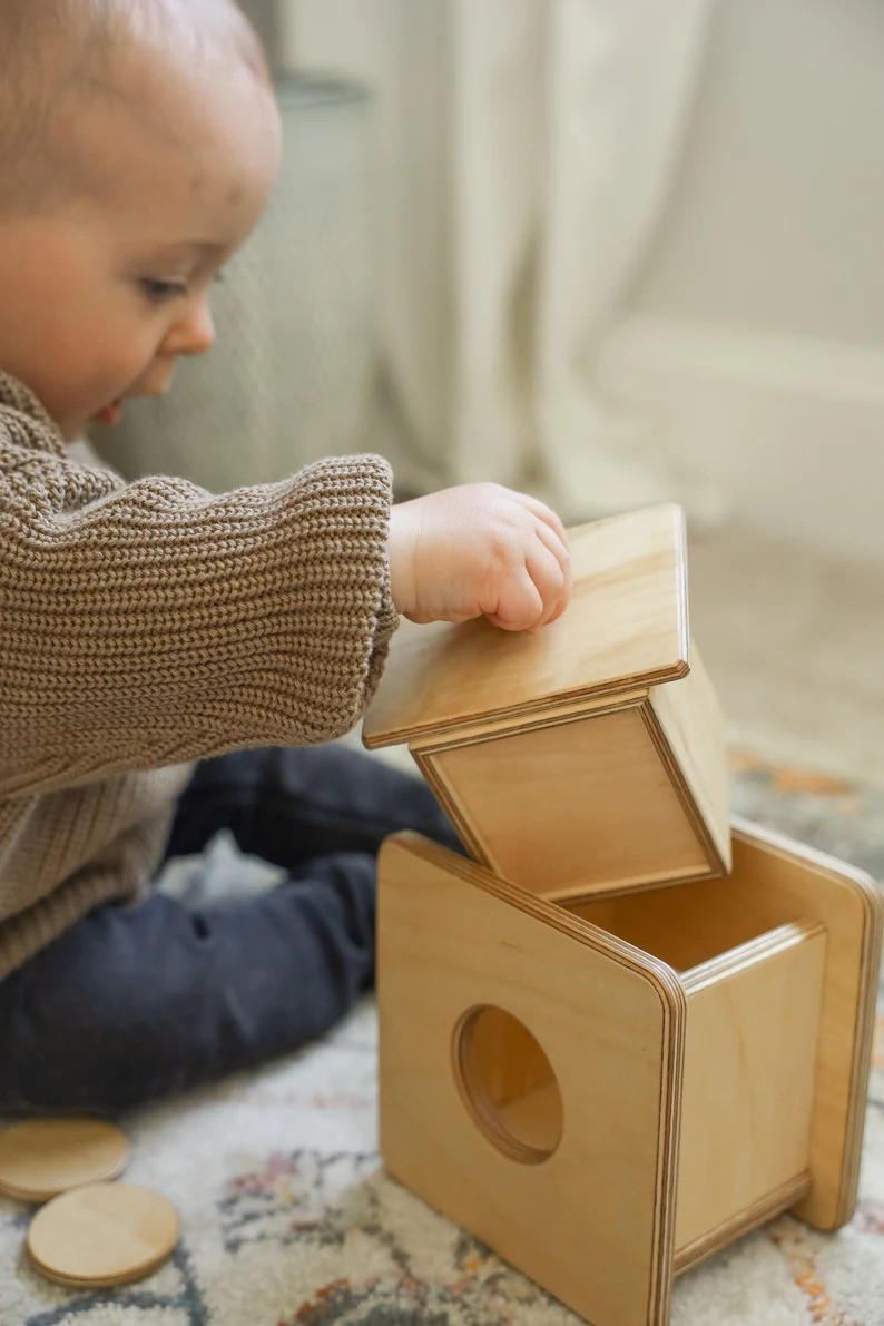 Komplektā: kastīte, lādīte, trīs aplīši un viena koka bumbiņa.