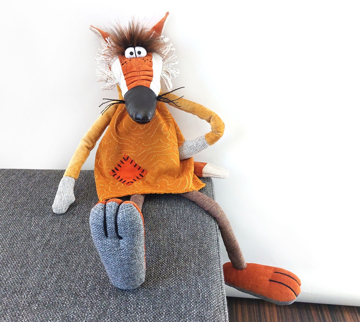 Auduma lapsa 100% handmade. Mazākā lapsas jaunkundze apm 60cm- 49 EUR, Lielākais lapsas kungs apm 70cm- 59 EUR. Lapsa ir samērā liela un var būt izmantota ne tikai kā rotaļu draugs, bet arī kā interjera priekšmets vai oriģināla dāvana attiecīgo uzvārdu pieaugušajiem. Aizmugurē tam ir cilpiņa/pakaramais, kas ļaus to piekārt pie sienas. Galvenā leļļu testētāja ir mana mazmeitiņa, kurai ir 3 gadi.