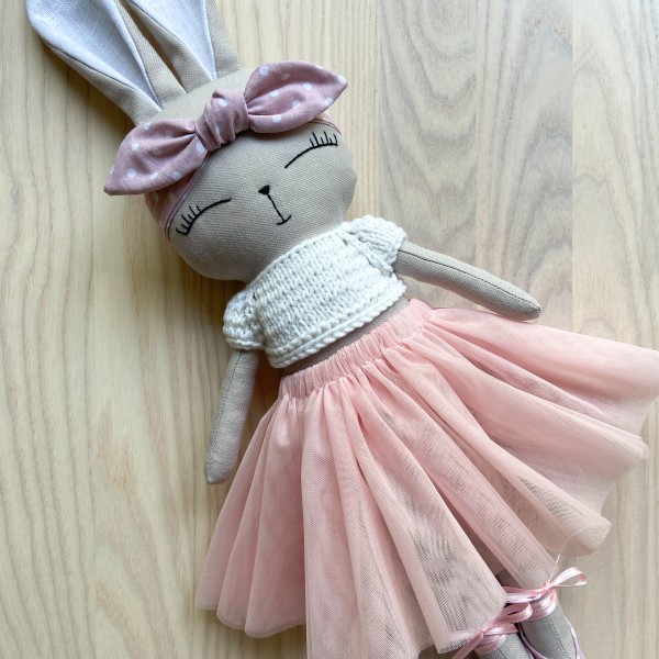 Skaistās zaķu meitenes tilla svārciņos un adītās jaciņās, klāt apaviņi un galvas rotas. Apģērbs iespējams vairākās krāsās. Dāmu augums mērot ar ausīm 43cm. Viss apģērbs ir noģērbjams. Var pasūtīt arī papildus tērpus vai veselu garderobi.