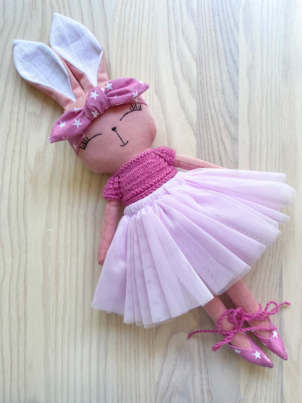 Skaistās zaķu meitenes tilla svārciņos un adītās jaciņās, klāt apaviņi un galvas rotas. Apģērbs iespējams vairākās krāsās. Dāmu augums mērot ar ausīm 43cm. Viss apģērbs ir noģērbjams. Var pasūtīt arī papildus tērpus vai veselu garderobi.