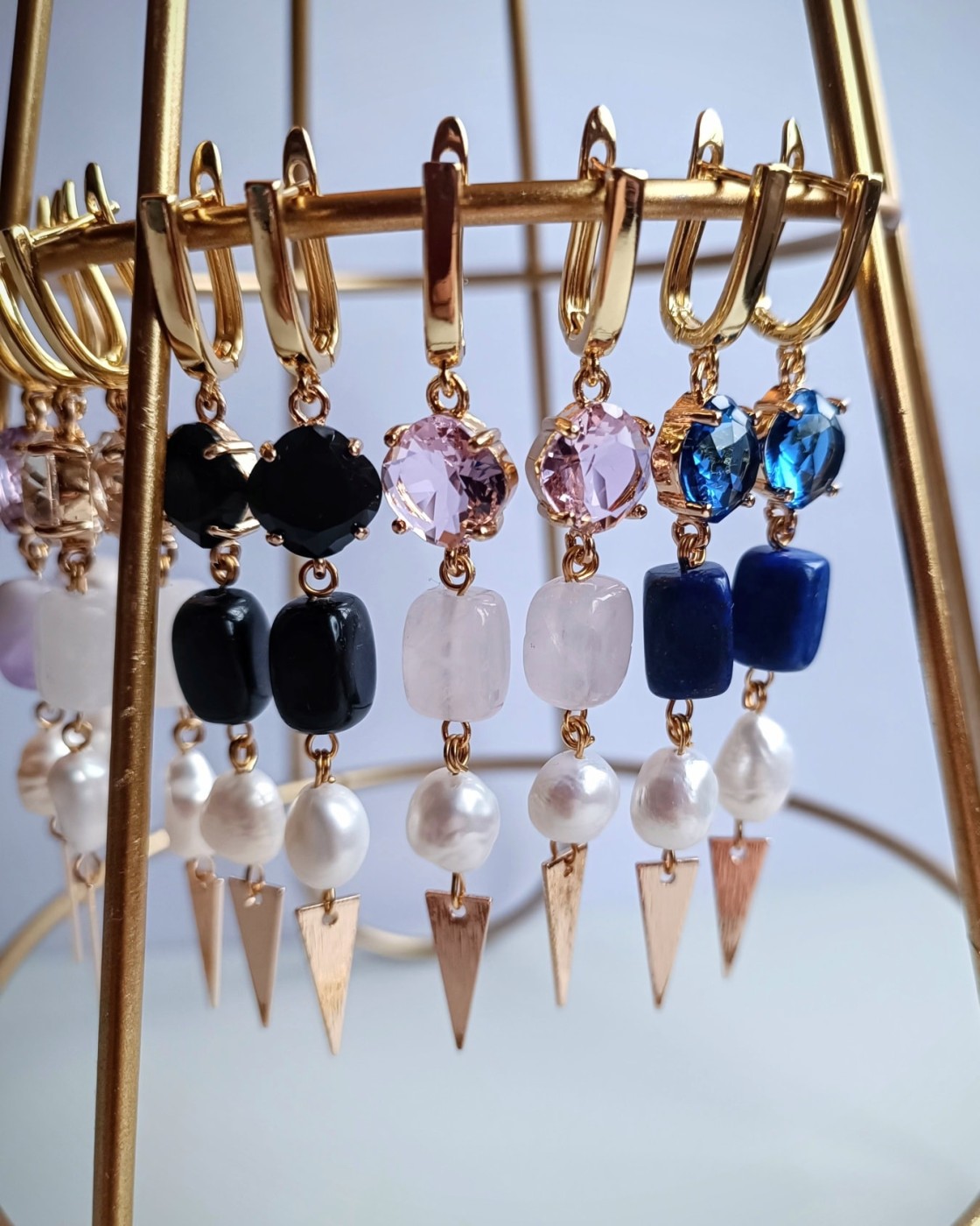 🔅Stikla kristāli ietvarā, akmens slīpētas pērles, saldūdens pērles.