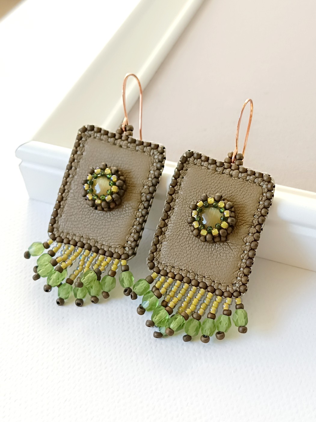 Skaisti, haki zaļi, dabas iedvesmoti auskari. Auskari ir viegli, nav smagnēji. Lieliska ideja dāvanai.