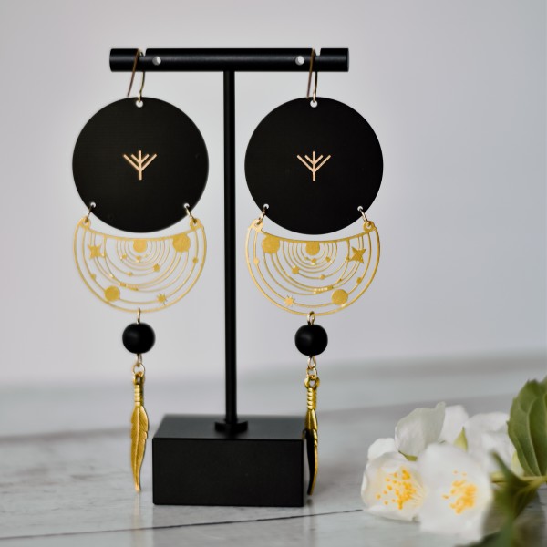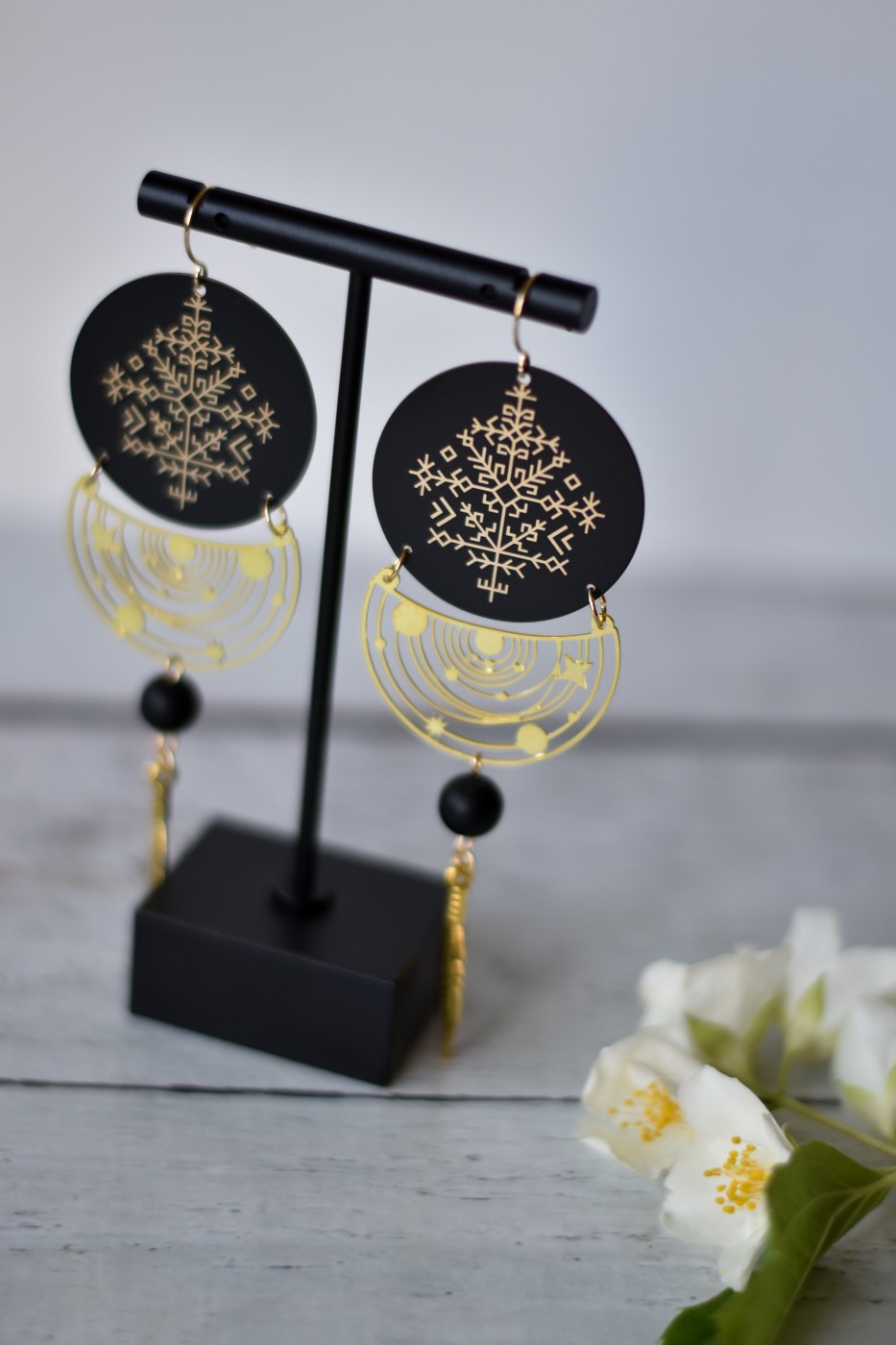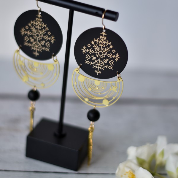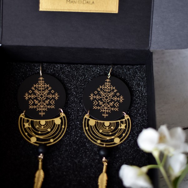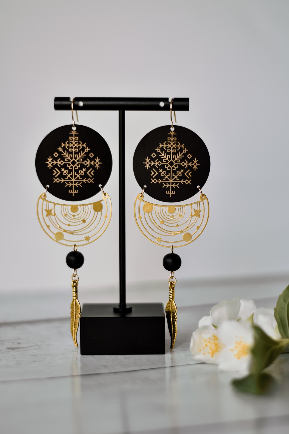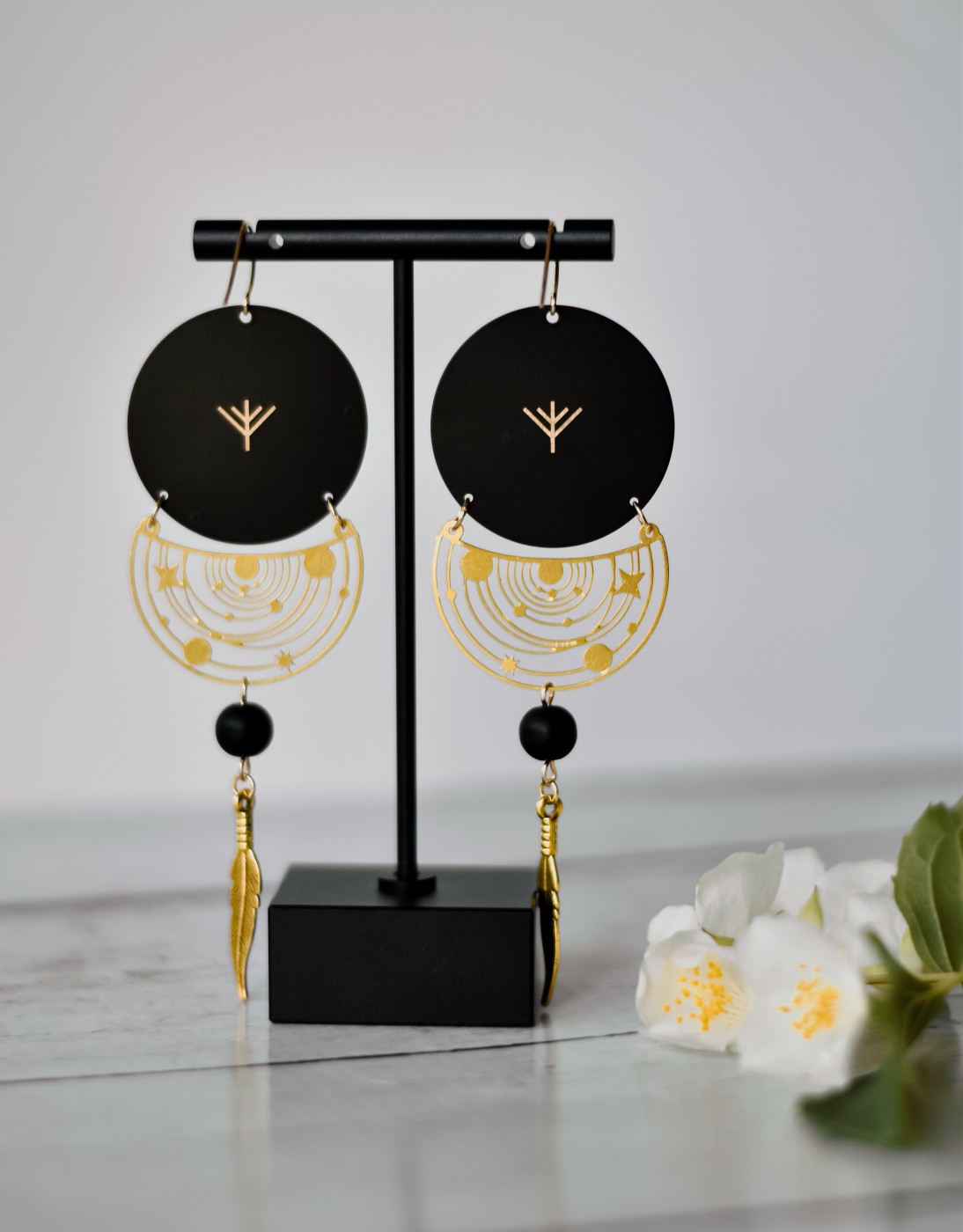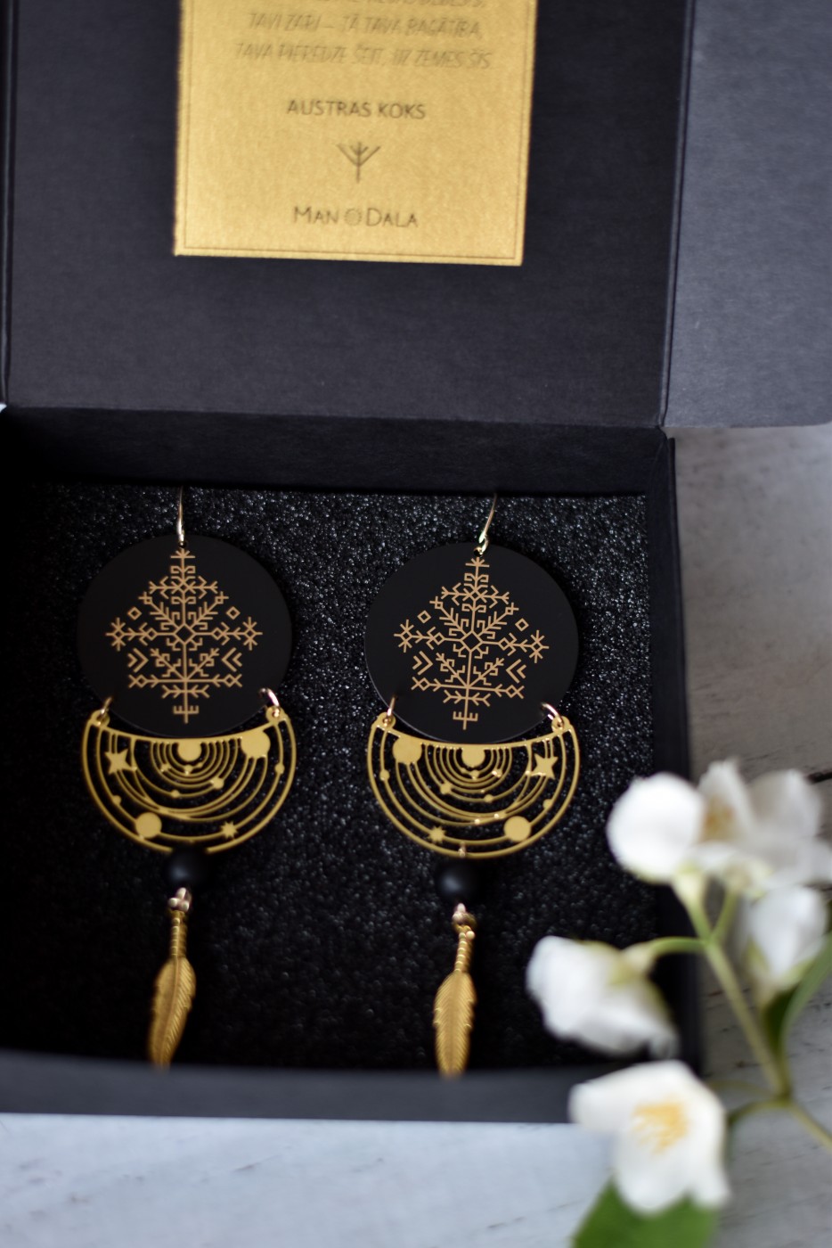 Garie auskari AUSTRAS KOKS, Galaktika, melni zeltīti