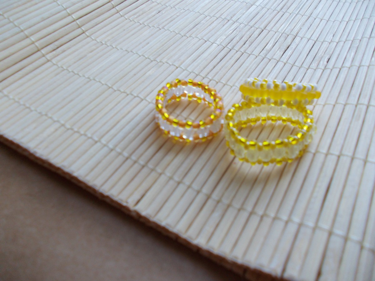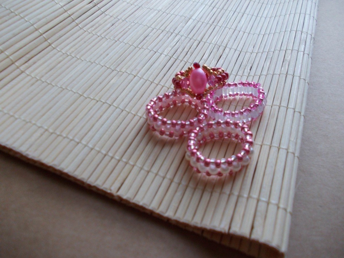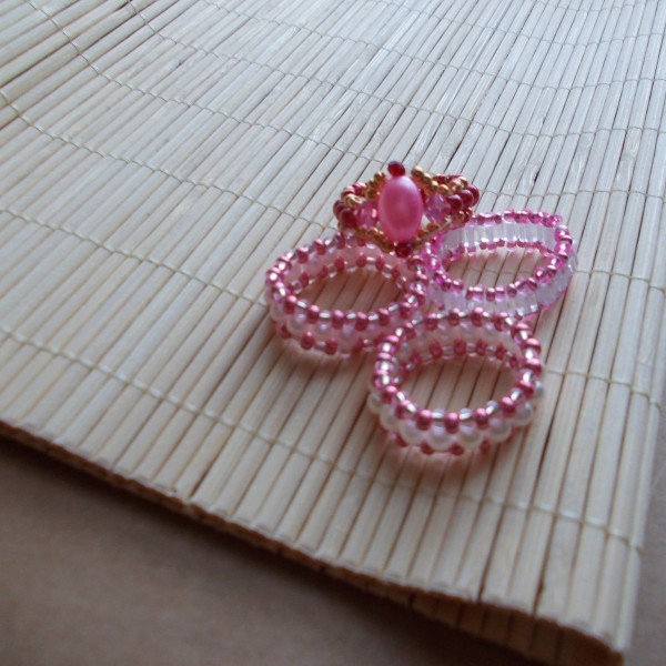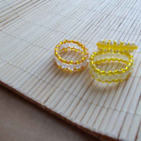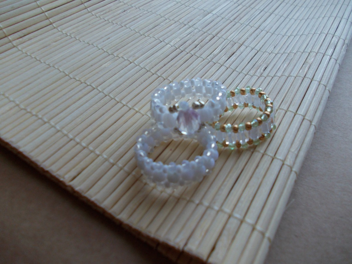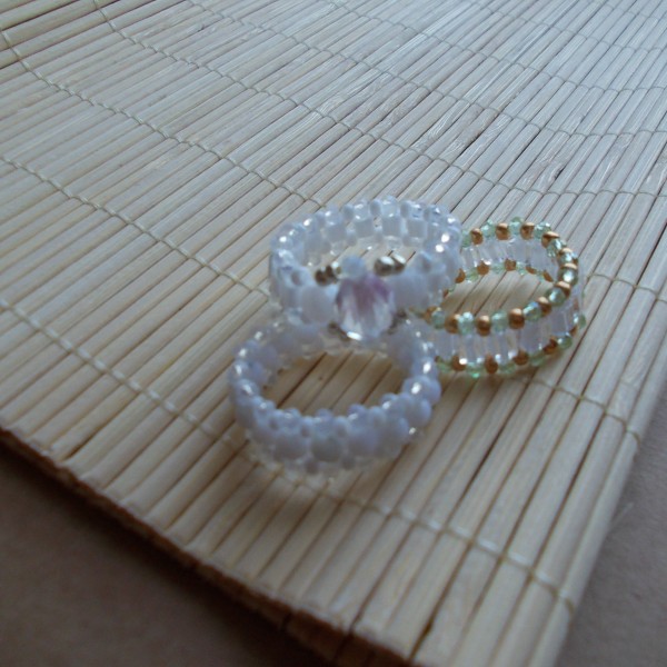 Roku darbs, no pērlītēm pīti gredzentiņi, dažādas krāsas un no dažādām pērlēm,