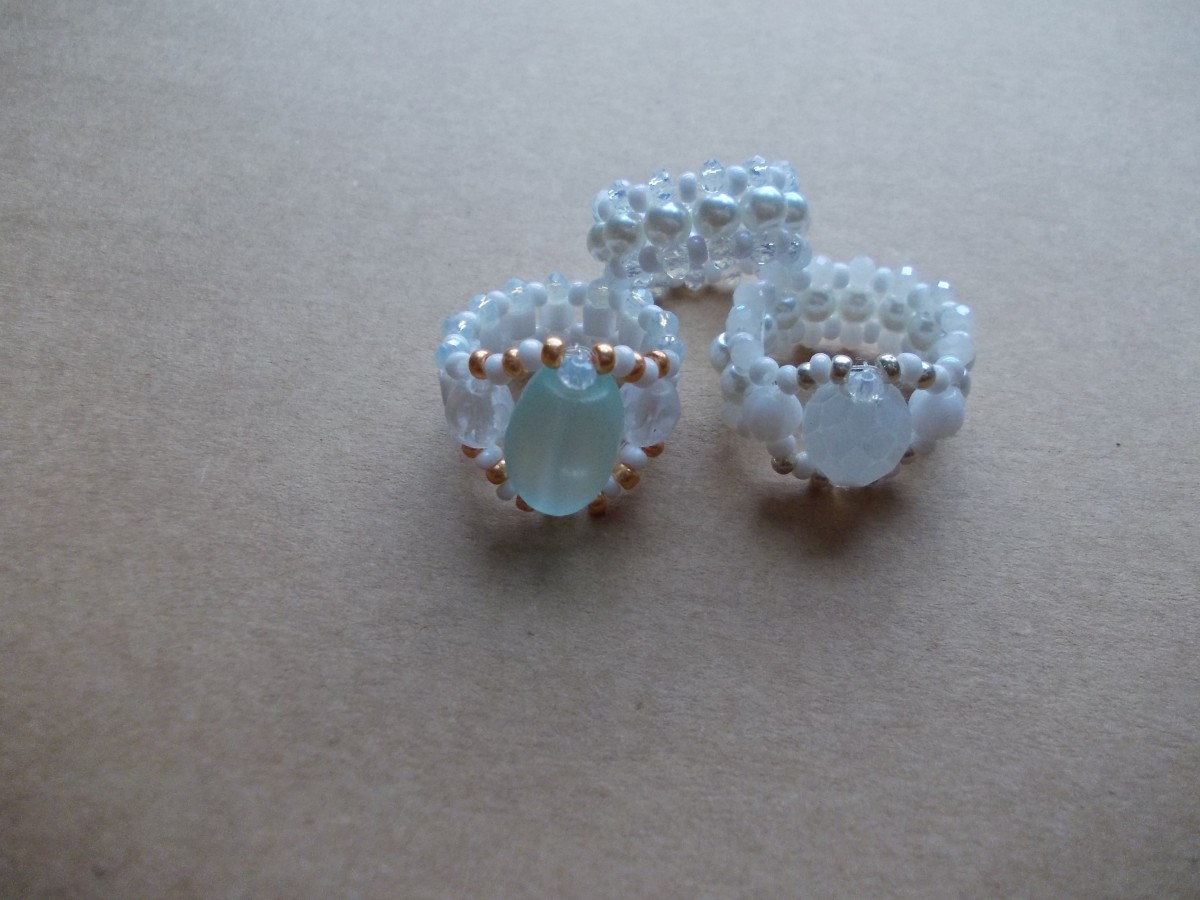 Gredzeni - pīti no pērlēm.