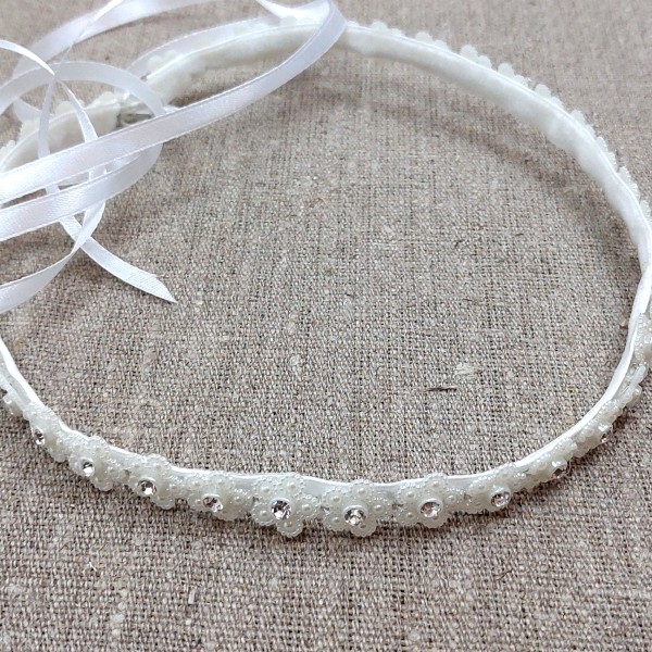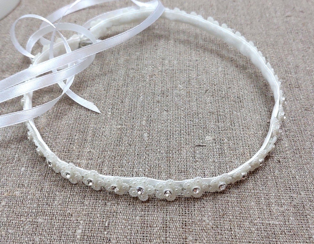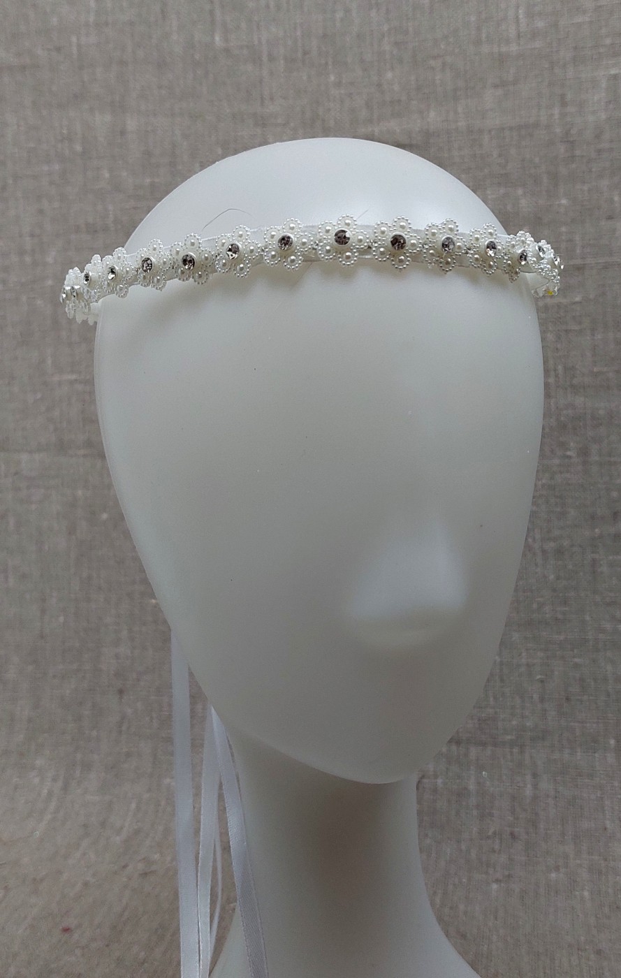 Regulējas sasienot ar lentēm aizmugurē. Derēs gan pieaugušam, gan bērnam. Rotājuma garums 52-54 cm. Ir arī daudzi citi vainadziņi. Rakstiet, nosūtīšu vairāk bildes.