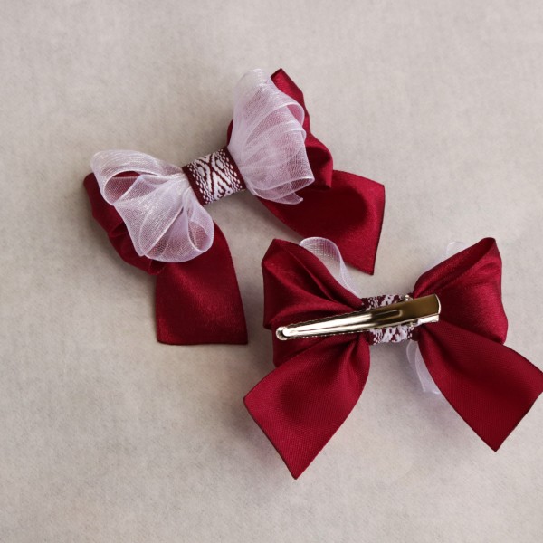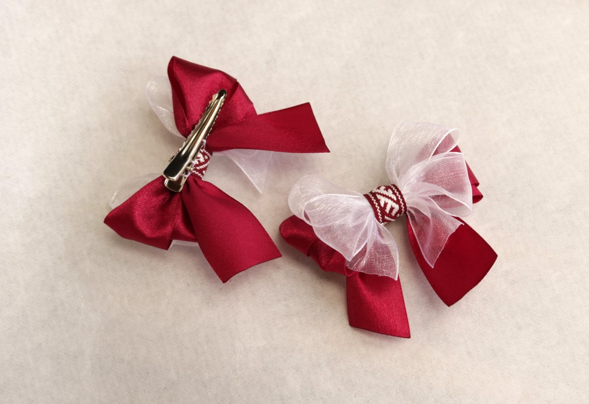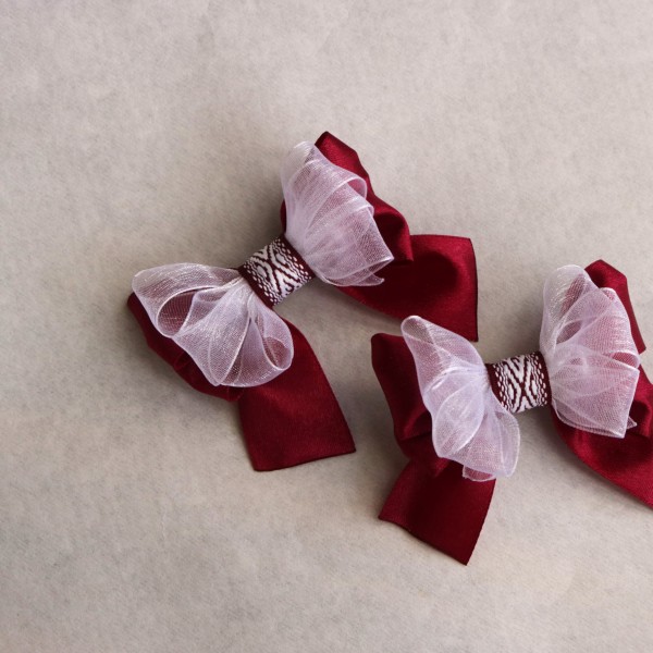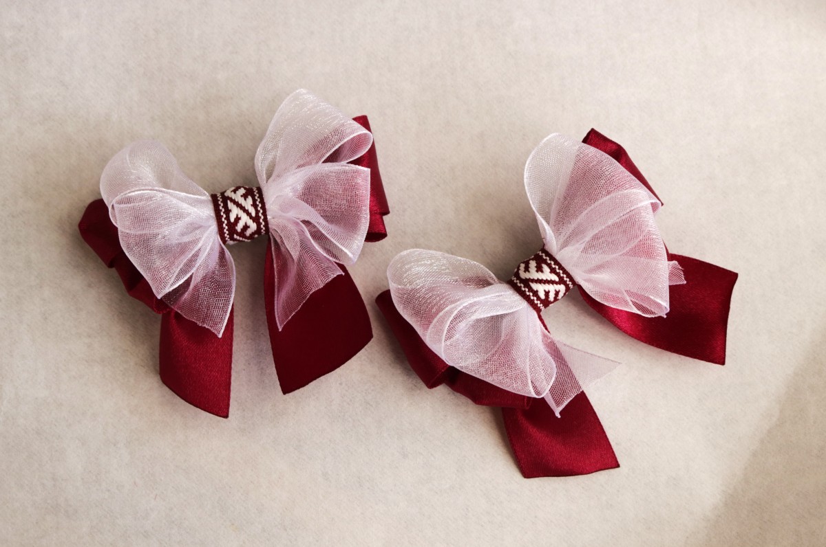 Latviskas matu rotas. Viedotas kā bante, ar latviska raksta (1.att. "ūsiņš" vai 2.att. "zalktis") prievīti vidū, aizmugurē spraude/knaģis.