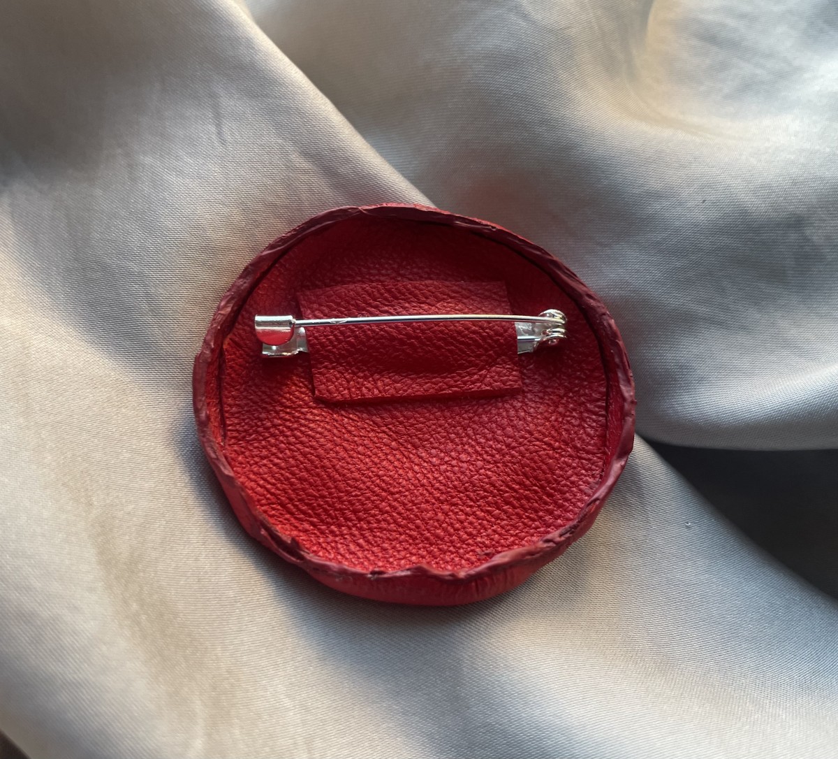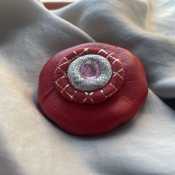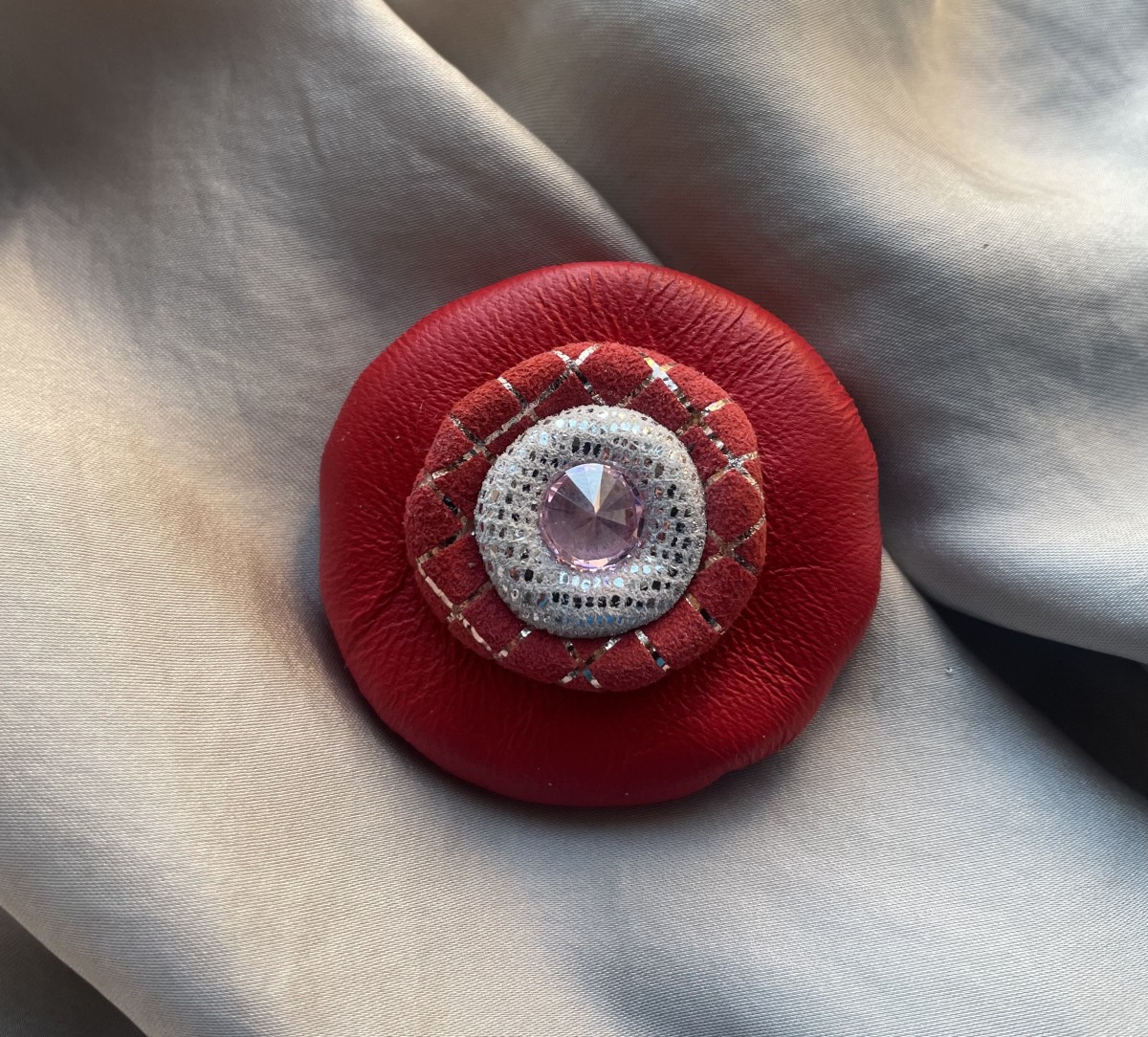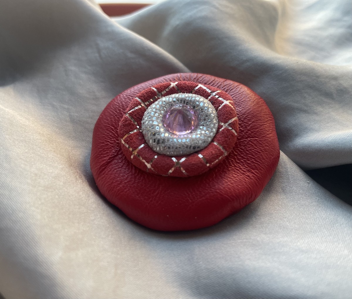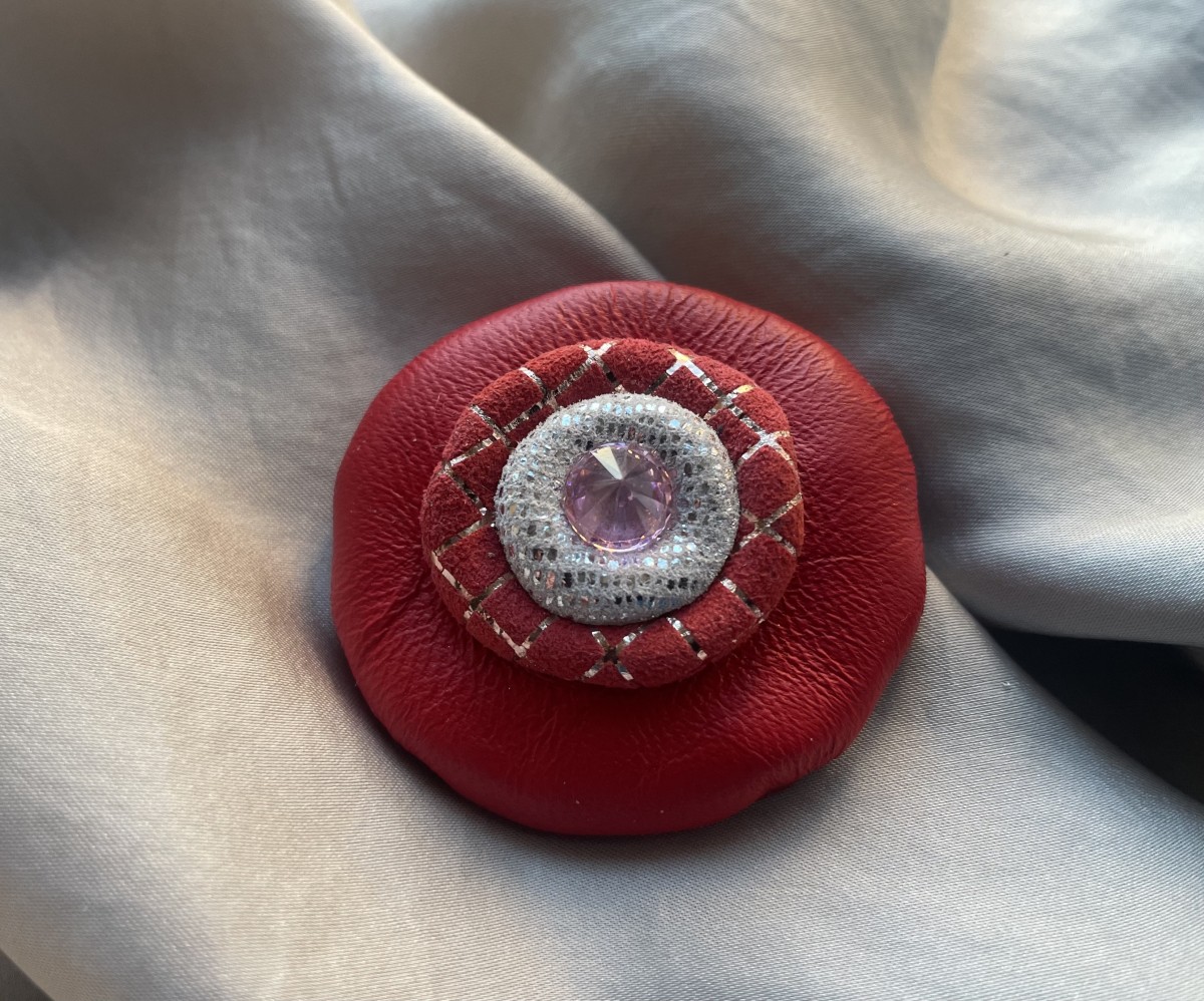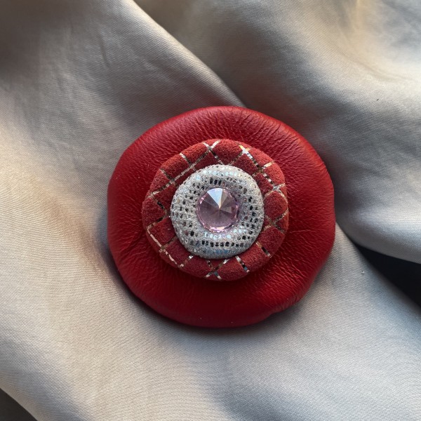 Dabīgas ādas broša (4,7cmx4,5cm) un Svarovski kristāliņš 0,8cm