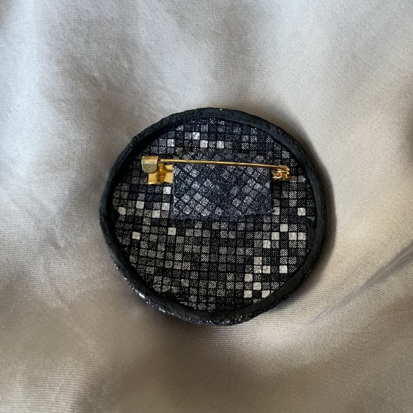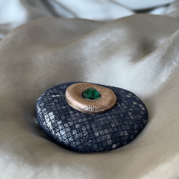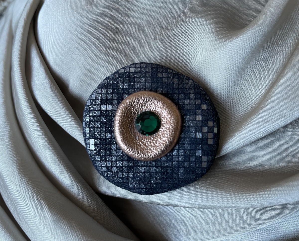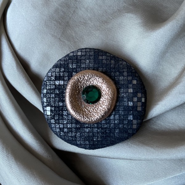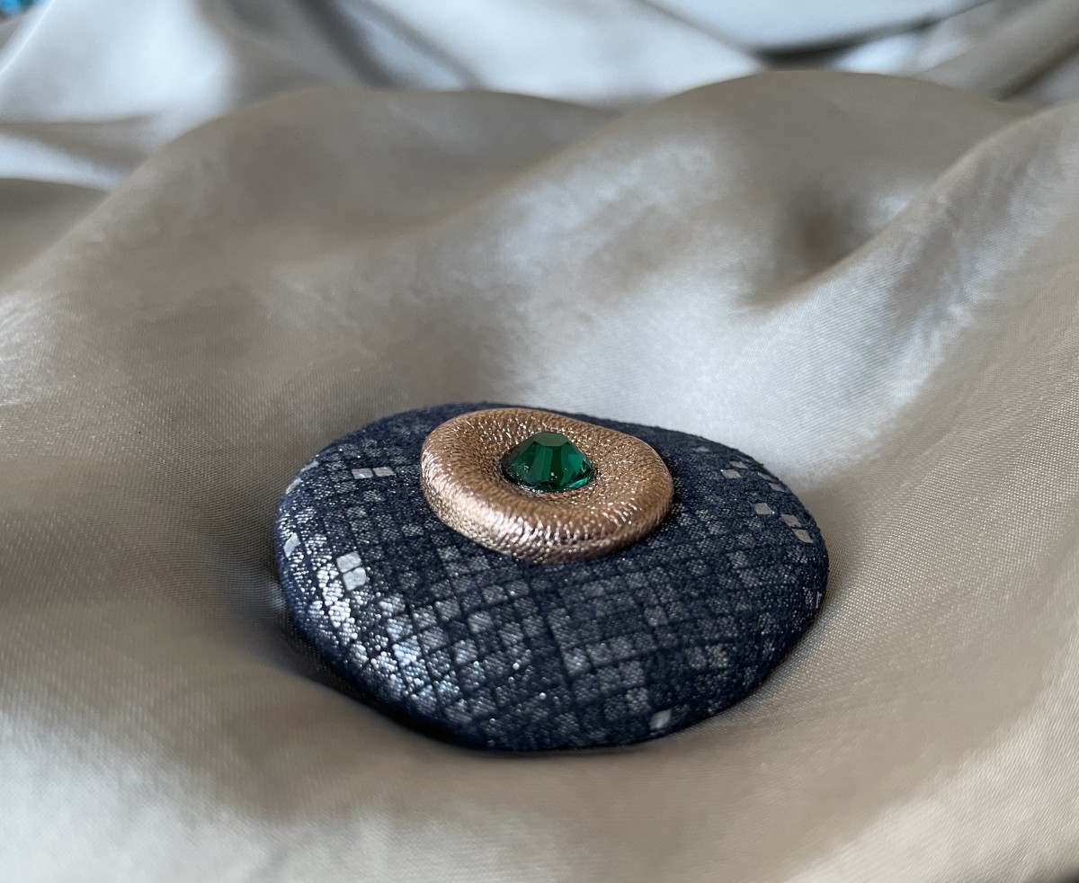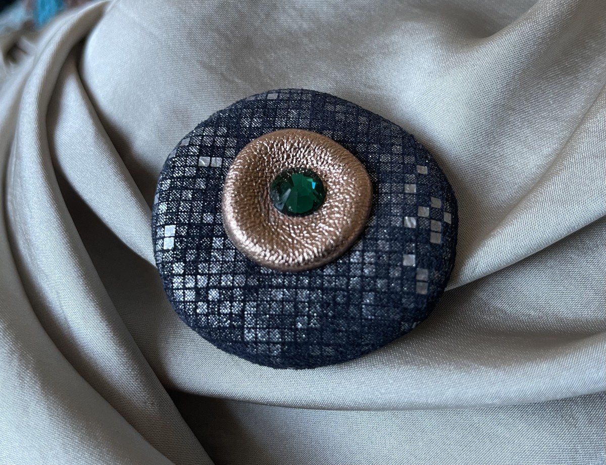 Dabīgas ādas brošiņa 4,6cm ar koši zaļu Svarovski kristāliņu