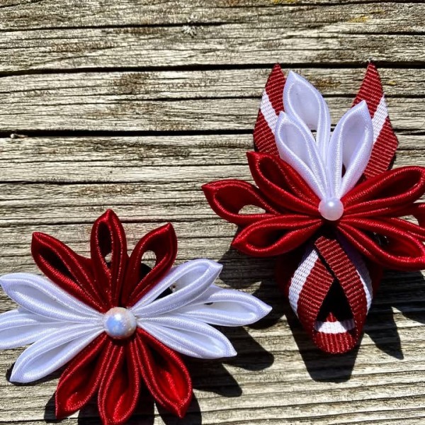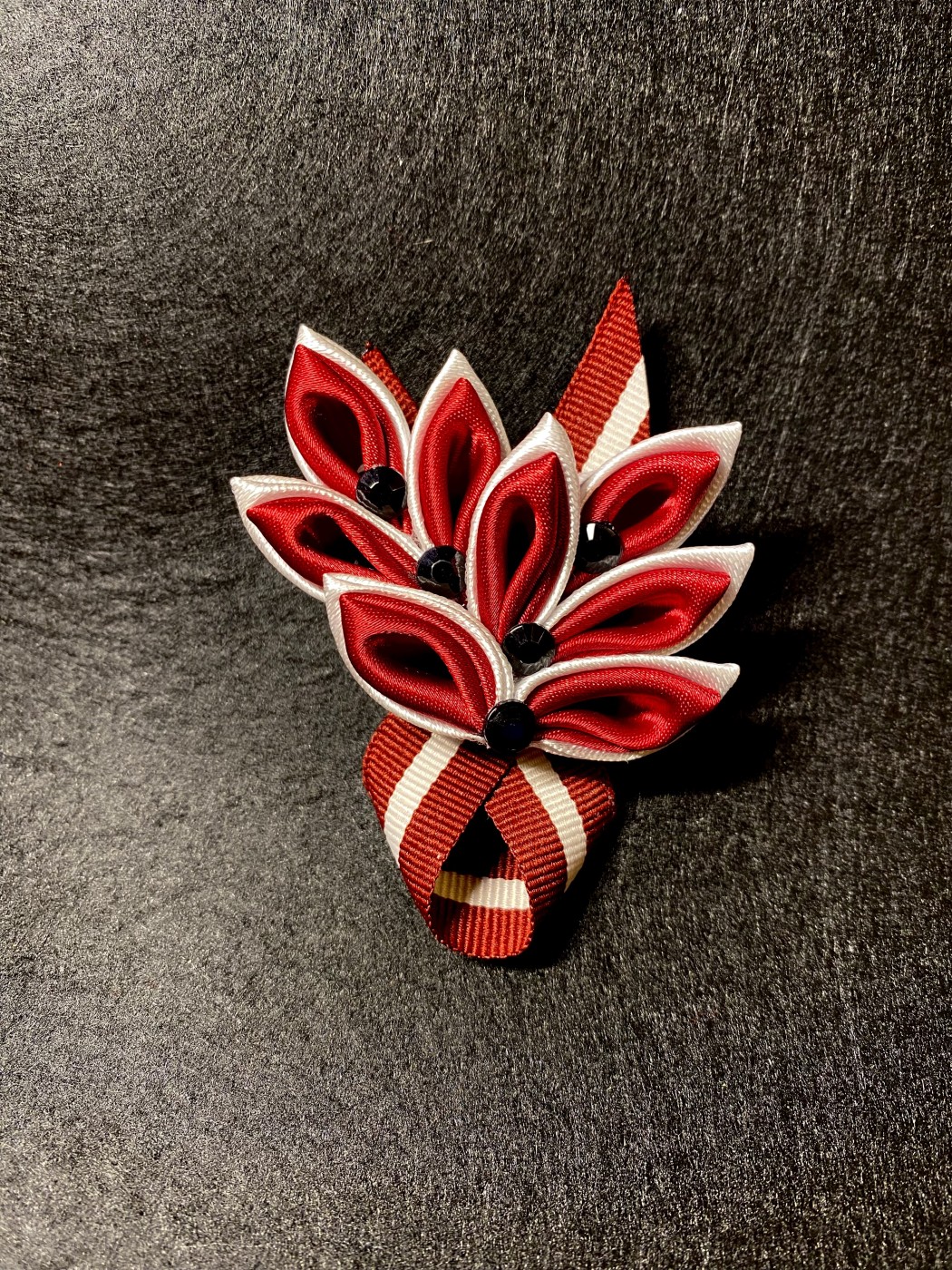 Sarkanbaltā Broša novembra svētkiem vai rudens aksesuāram.Pieejami vairāki veidi, papildus foto nosūtīšu privāti.