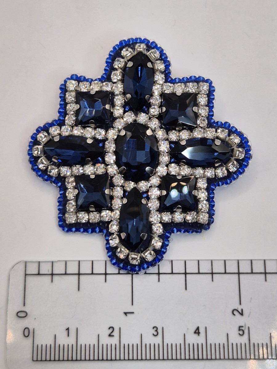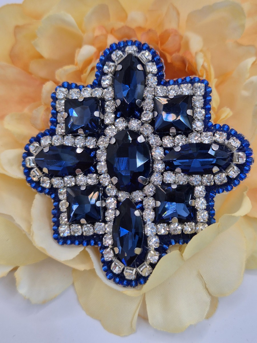 Brošiņa izūta ar Čehu un Japāņu sīkpērlītēm un maziem kristāliem. Otra puse apstrādāta ar dabīgo ādu. Sudrabkrāsas metāla aizdare