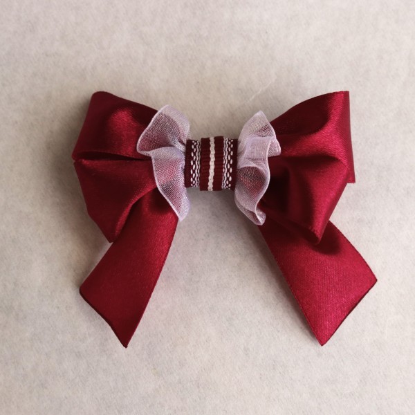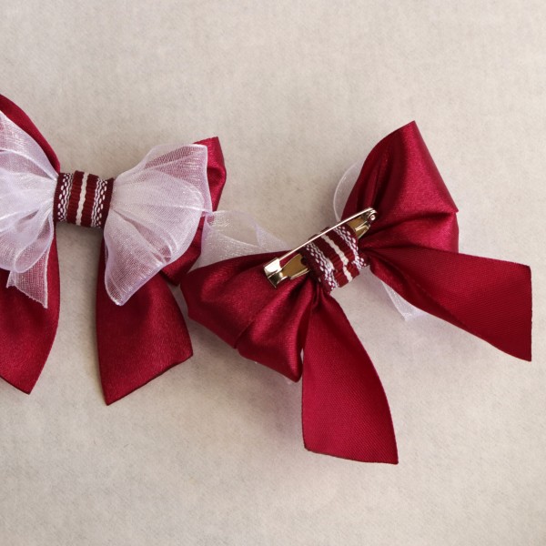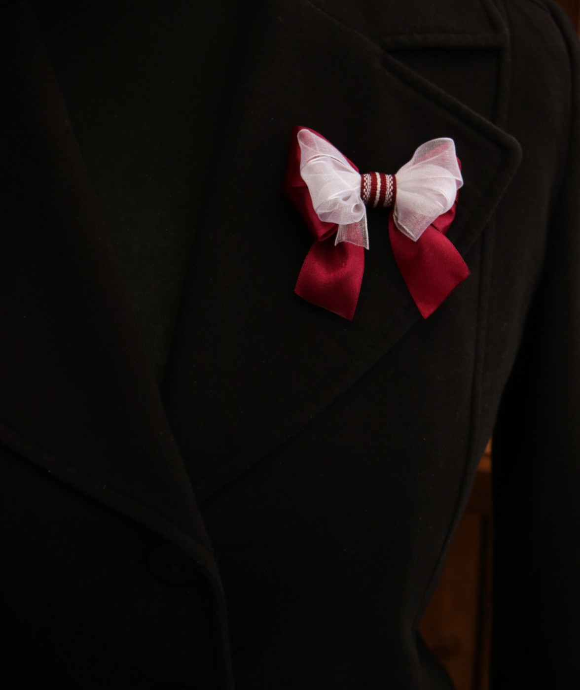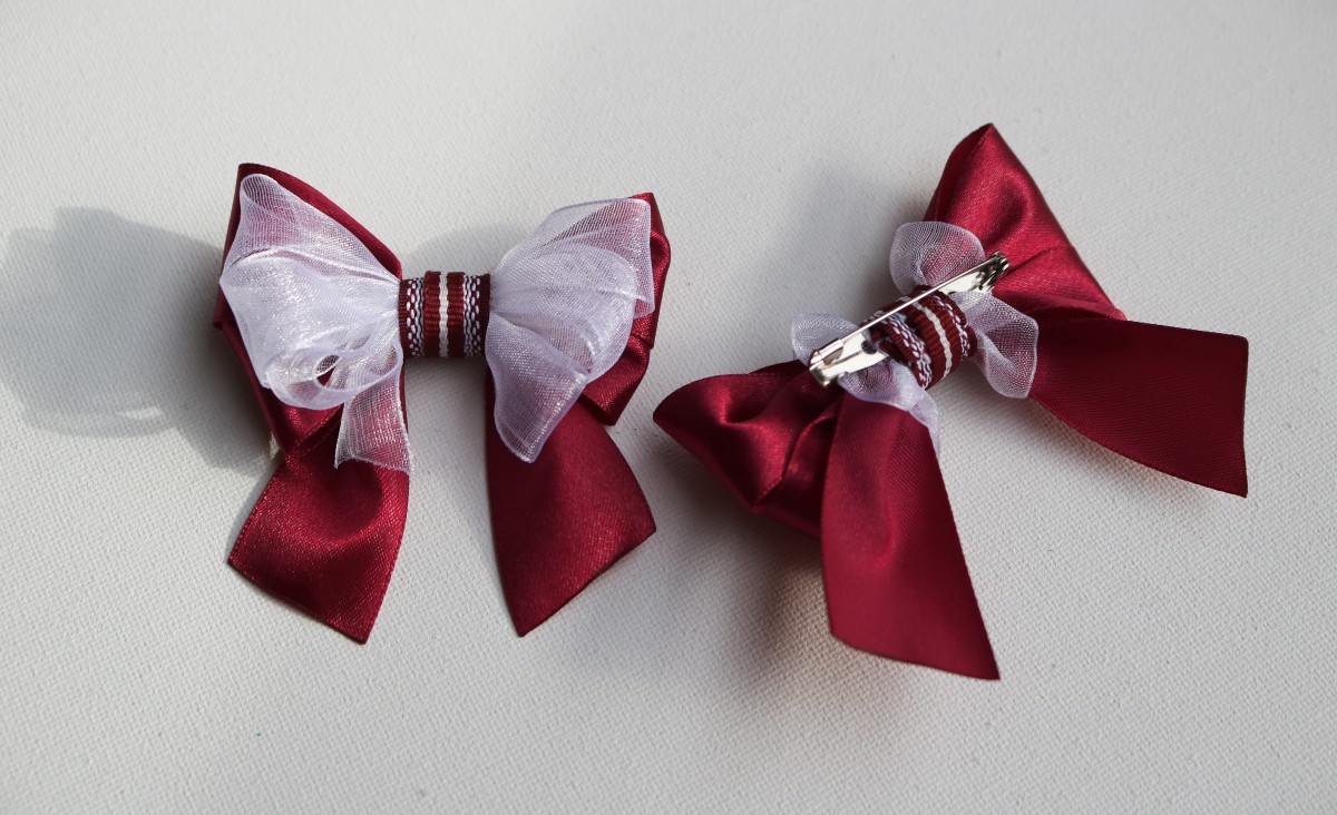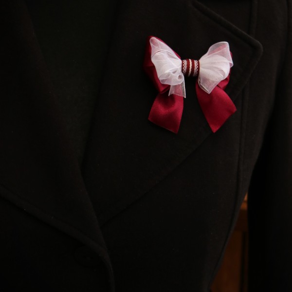 No atlasa un organzas lentām veidota piespraude ar prievīti vidū.