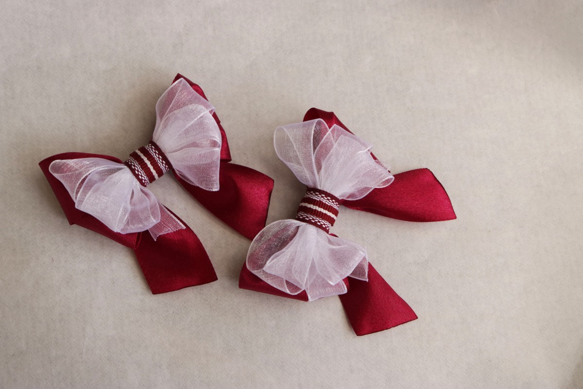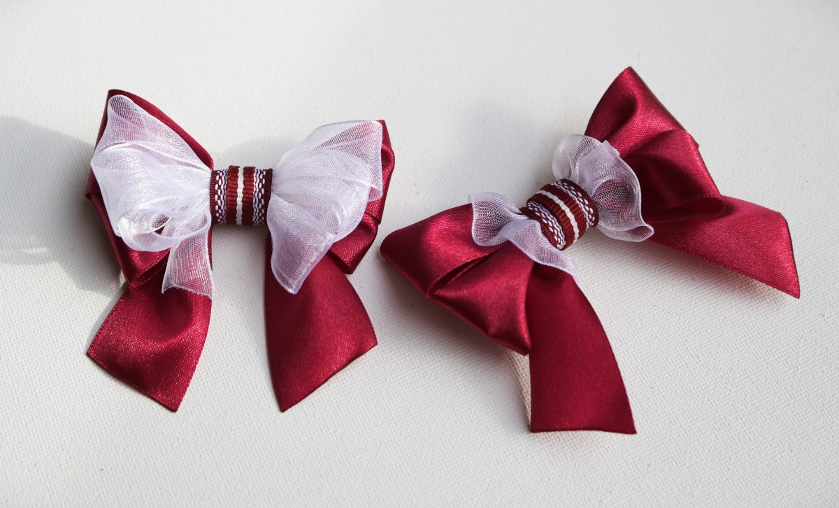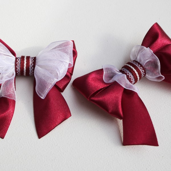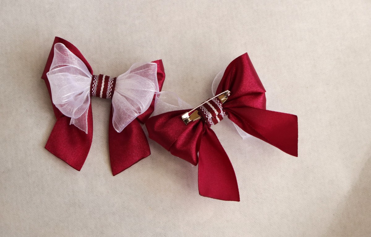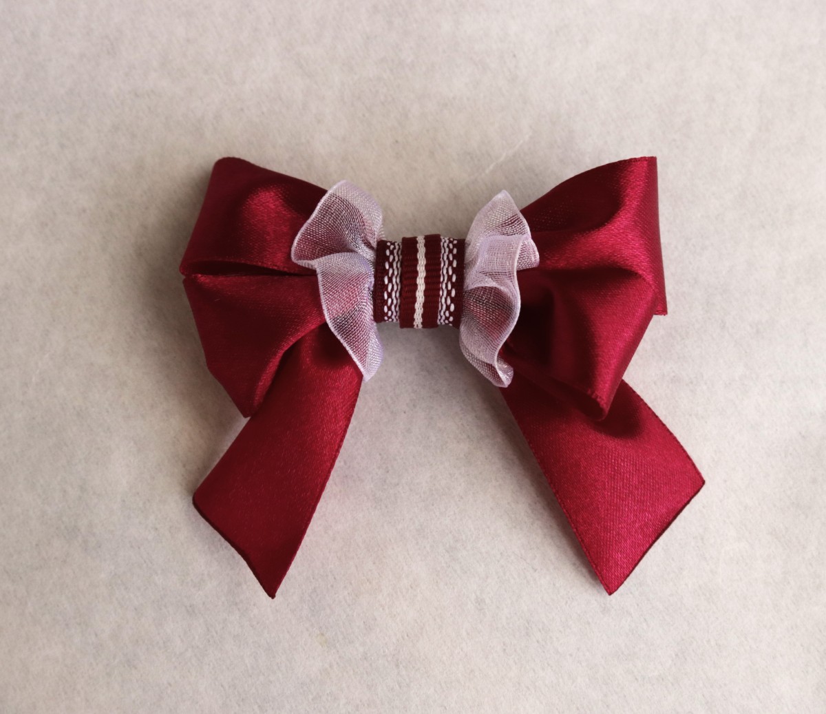 No atlasa un organzas lentām veidota piespraude ar prievīti vidū.