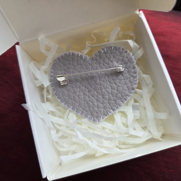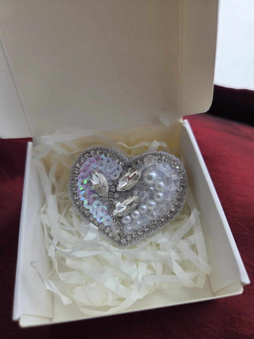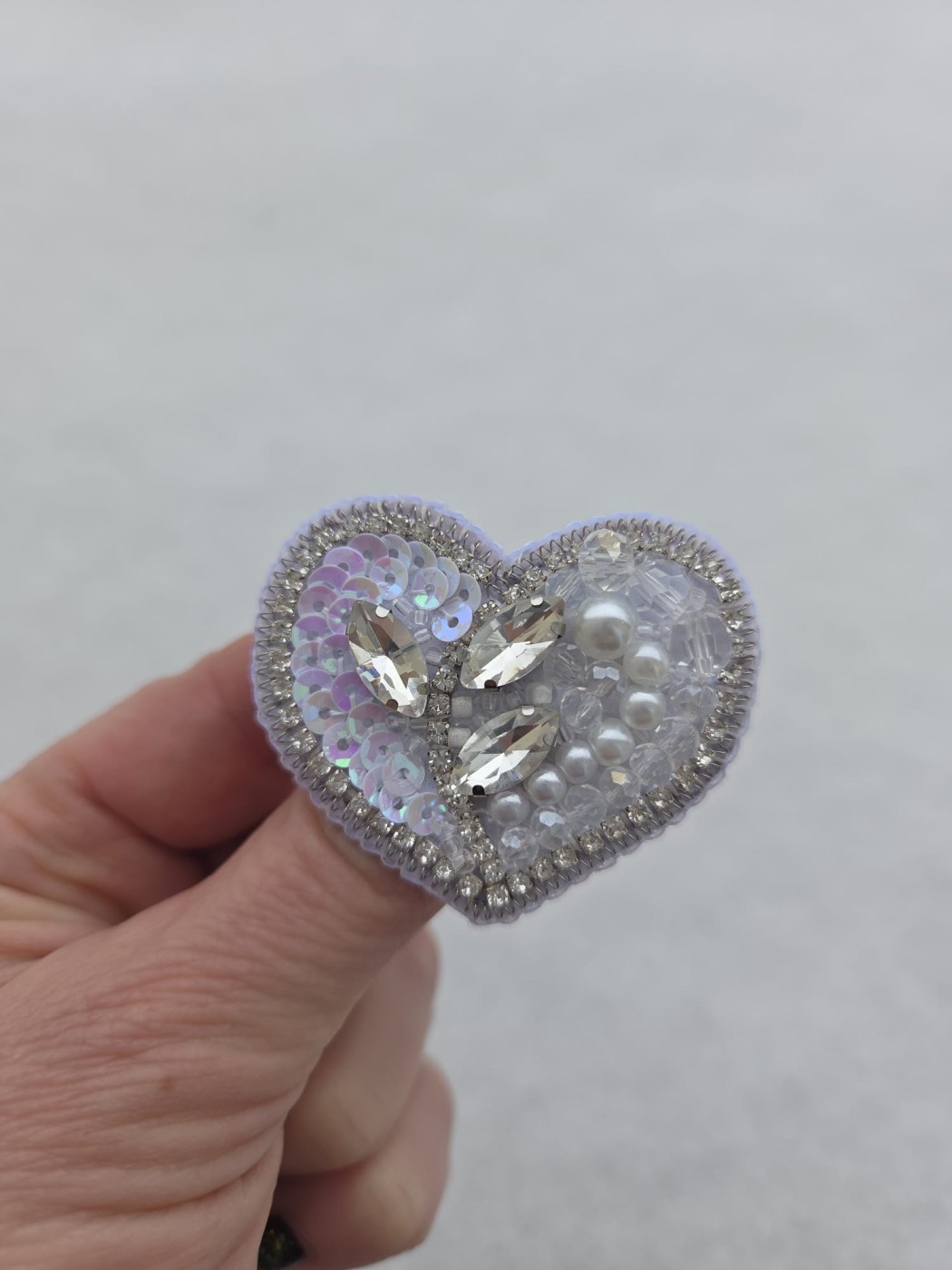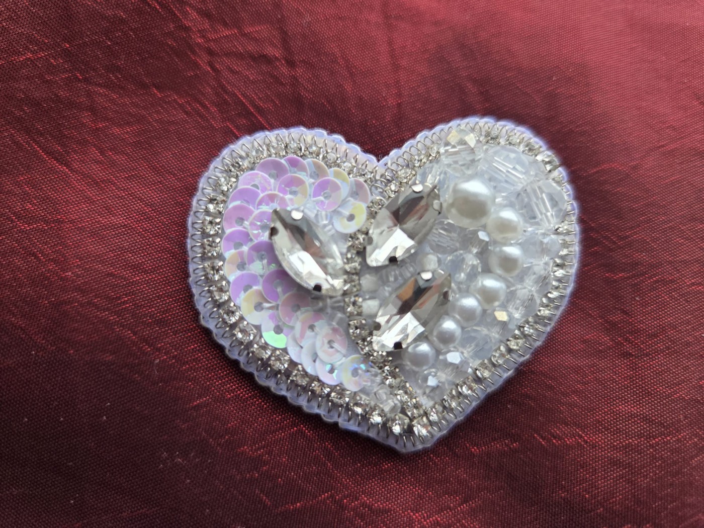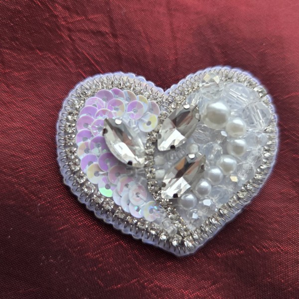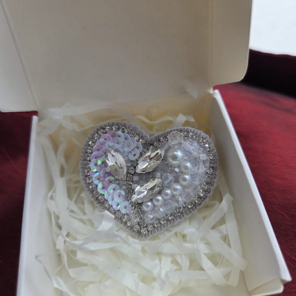 Ar rokām no dažādām pērlītēm šūta piespraude 4 x 5cm. Aizmugurē- mākslīgā āda. Nerūsējošā tērauda aizdare.
