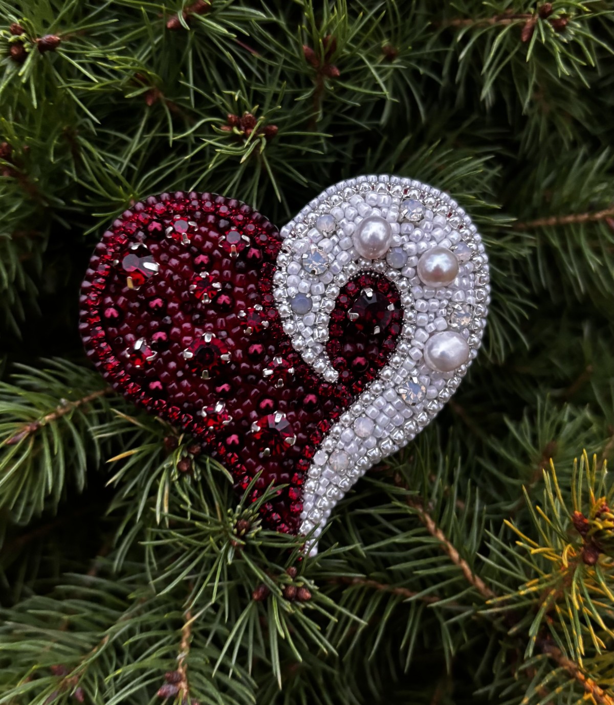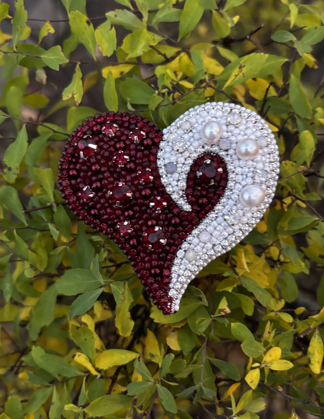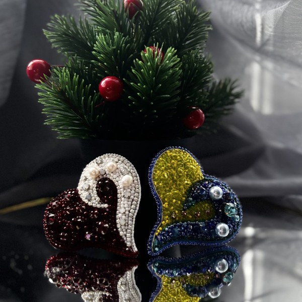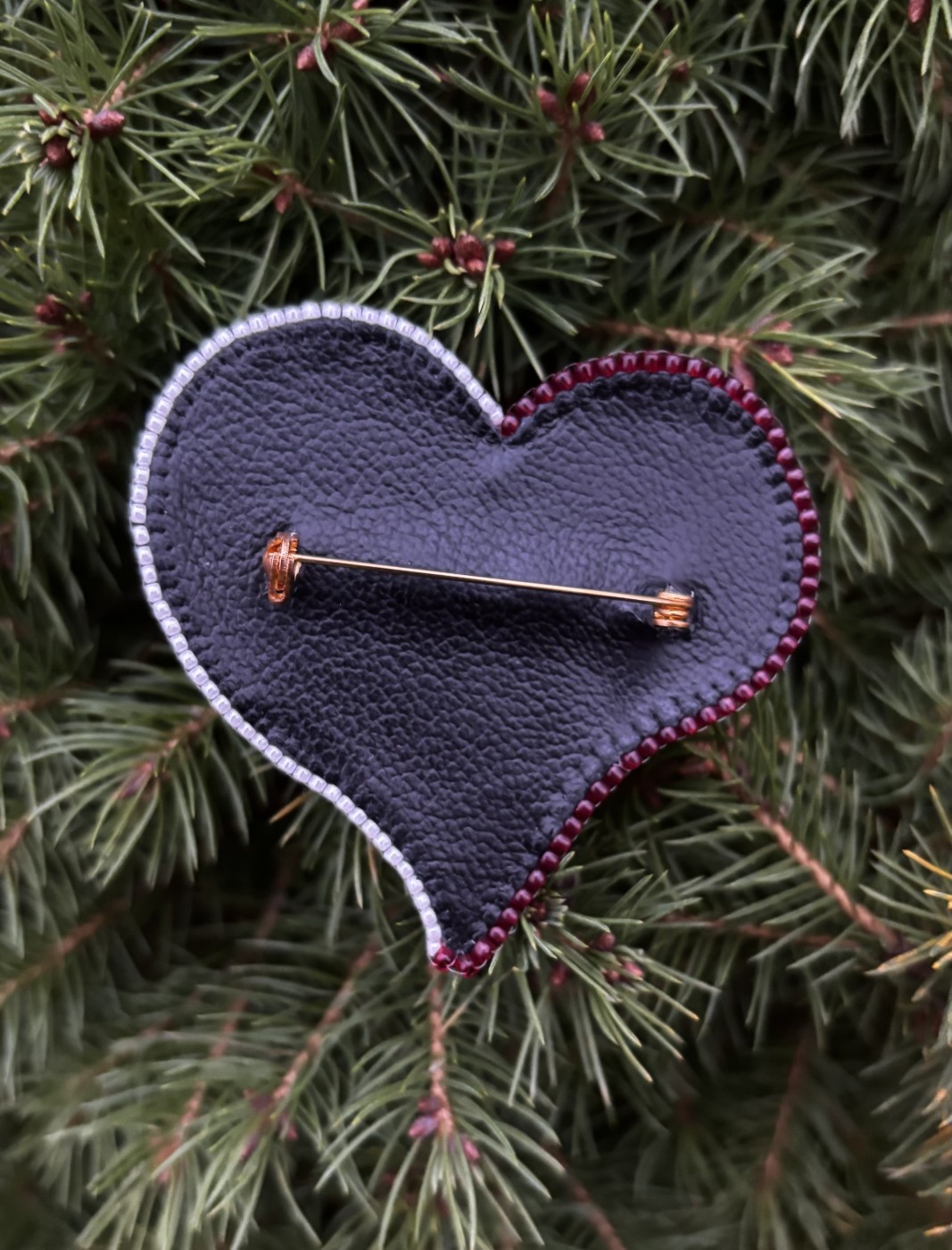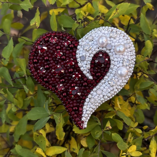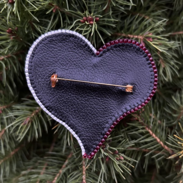 Pašdarināta broša sirds formā izpildīta Latvijas valsts karoga krāsās, ar upes pērlēm. Aizmugurē - īsta āda. Tā var būt lieliskā dāvana sev vai kādam īpašām cilvēkām.
