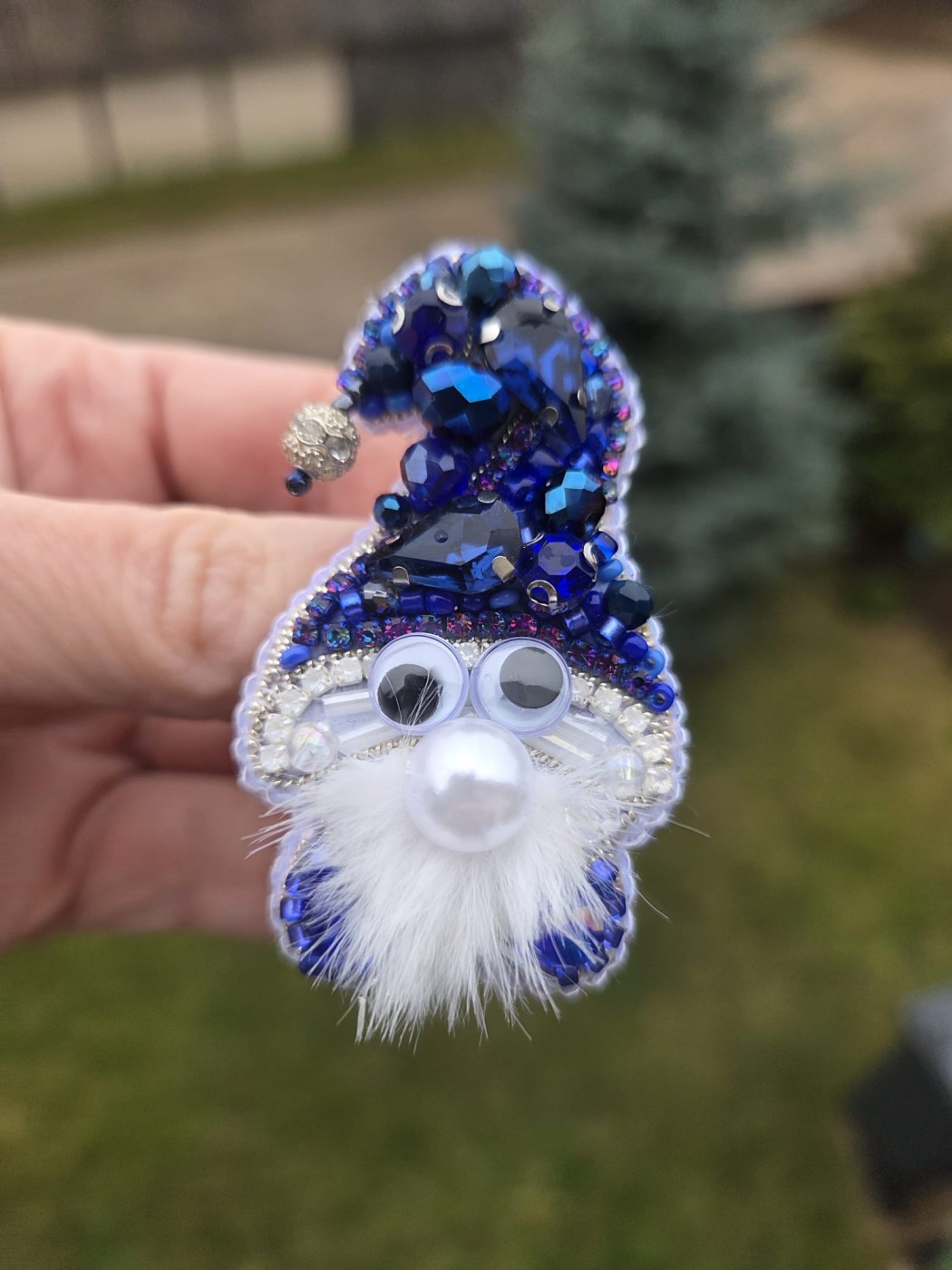 Ar rokām no dažādām pērlītēm šūta piespraude 6 x 3,5cm. Aizmugurē- mākslīgā āda. Nerūsējošā tērauda aizdare.