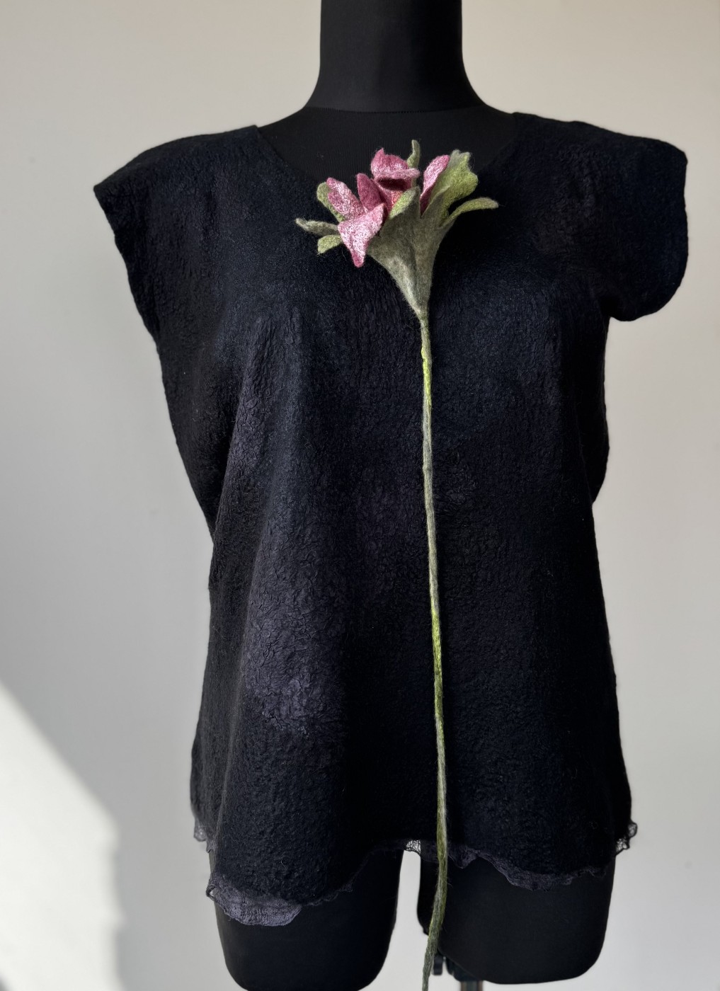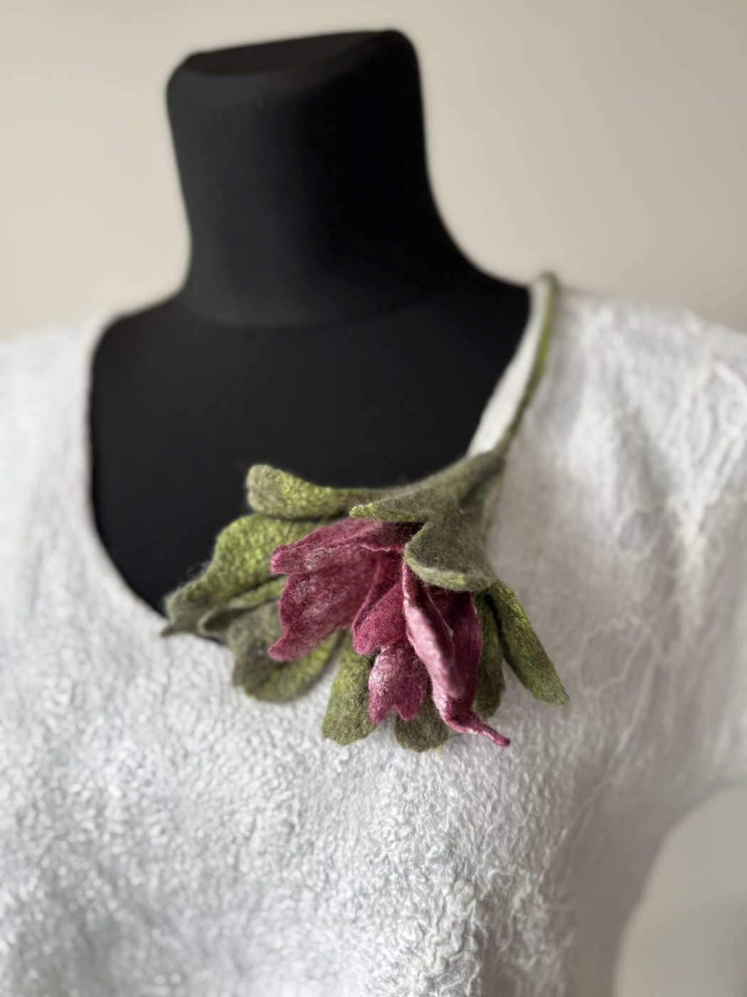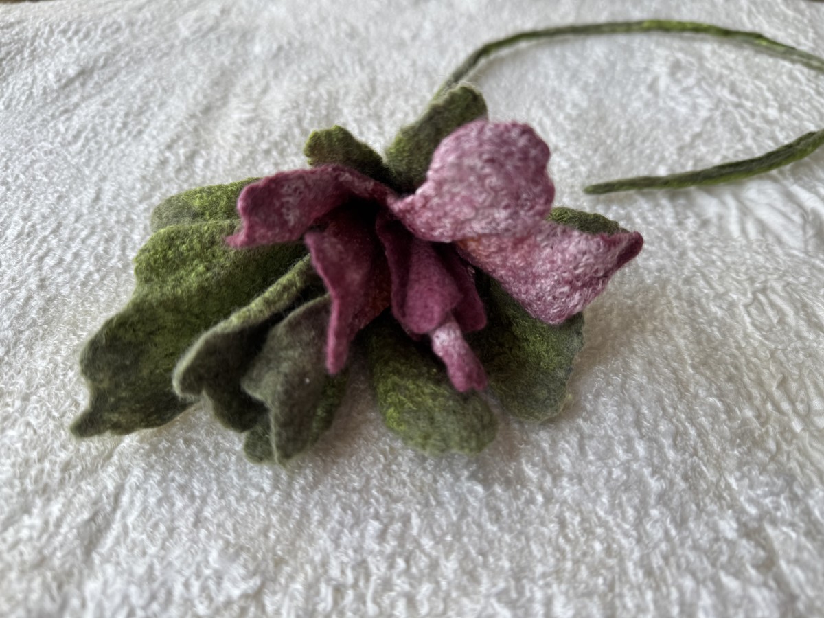 Zieds no kolekcijas "Sapņu dārzi" ir izgatavots slapjās filcēšanas tehnikā