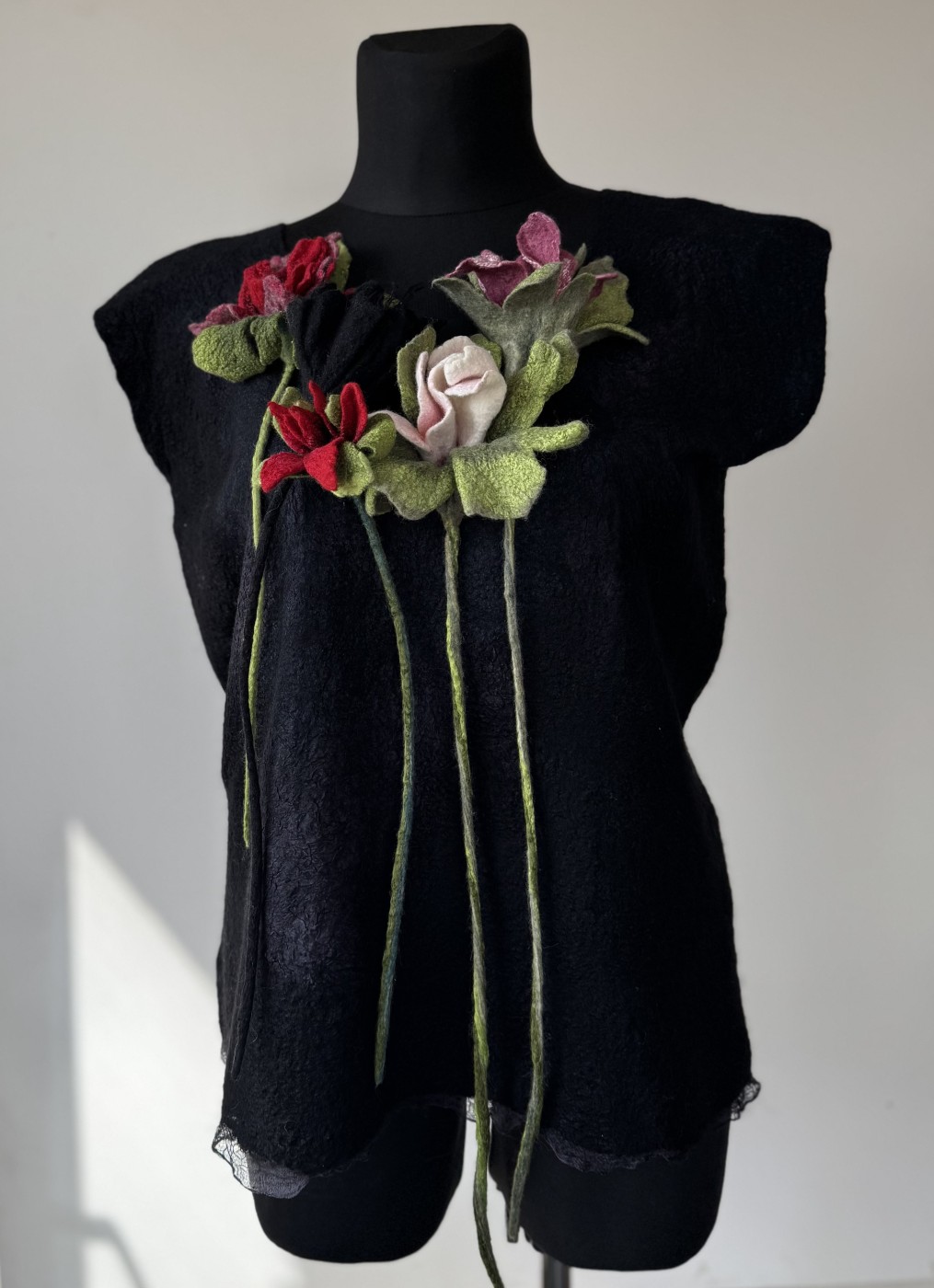 Zieds no kolekcijas "Sapņu dārzi" ir izgatavots slapjās filcēšanas tehnikā