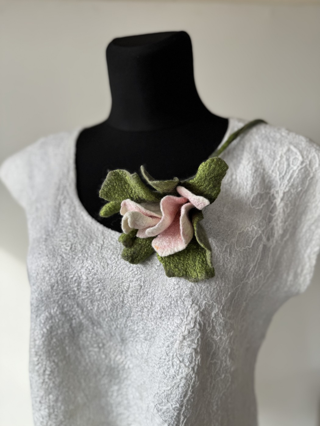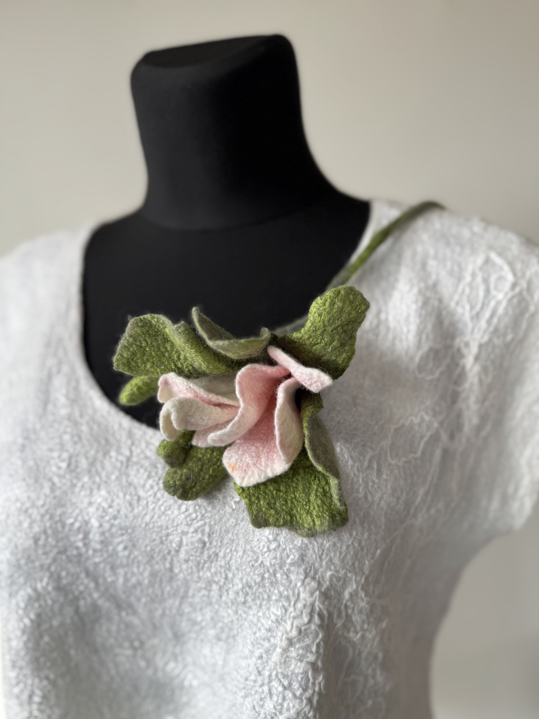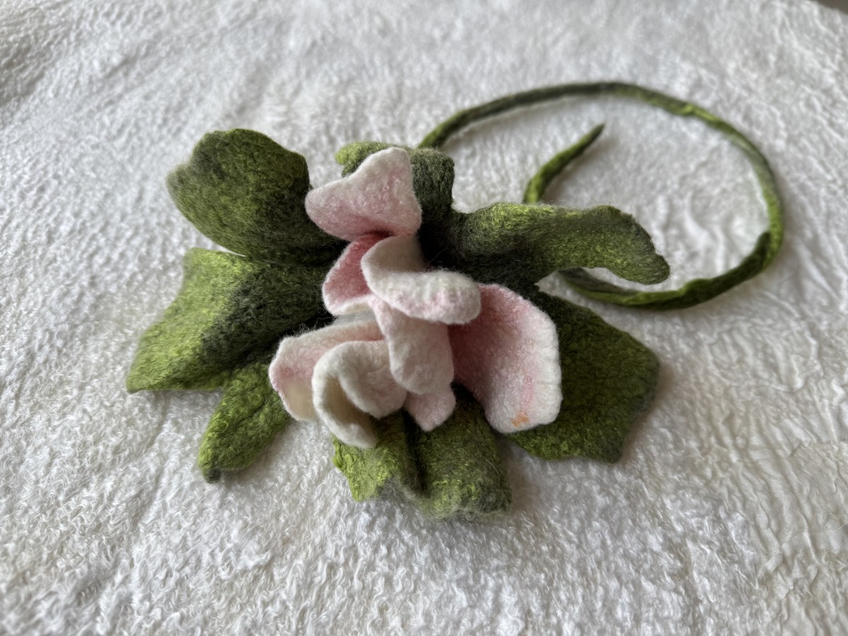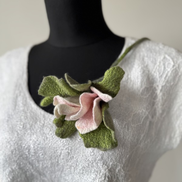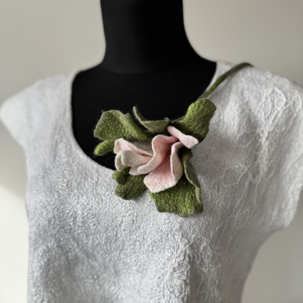 Zieds no kolekcijas "Sapņu dārzi. Maigums." ir izgatavots slapjās filcēšanas tehnikā