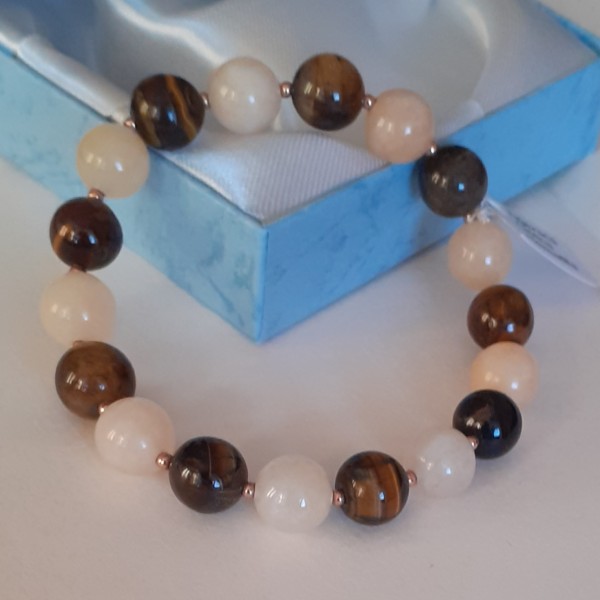 Aproce izgatavota no 10mm tīģeracs, citrīna un 2mm zelta krāsas hematīta pērlītēm,