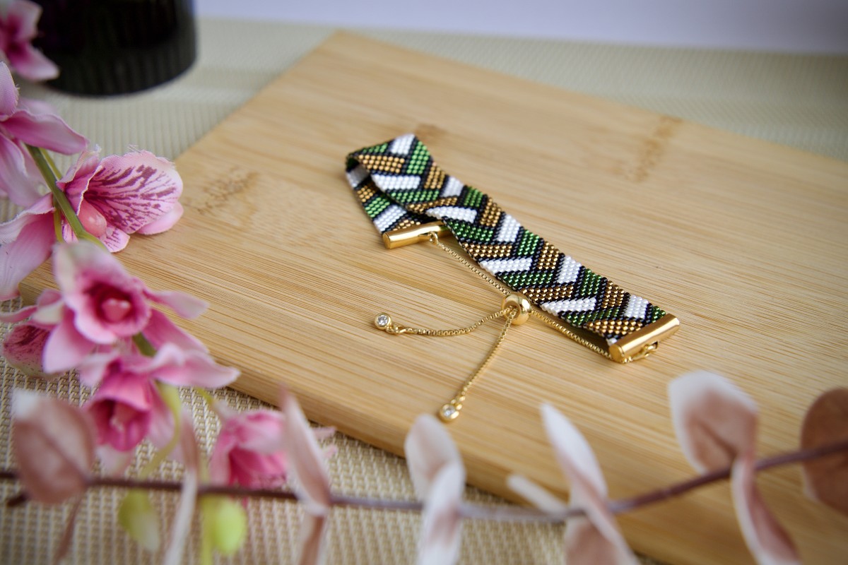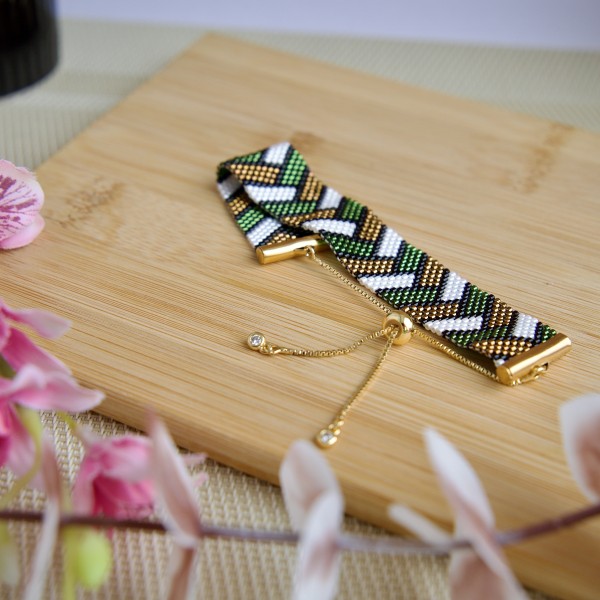 Sīkpērlīšu rokassprādze no Miyuki Delica pērlītēm. Izmērs regulējams no 16-20+cm rokas apkārtmēram.