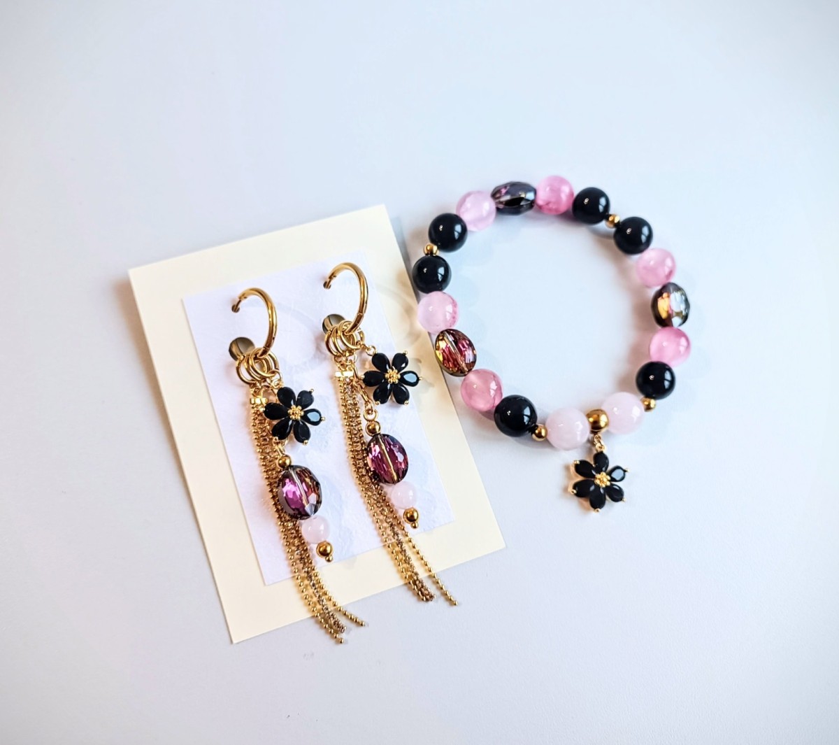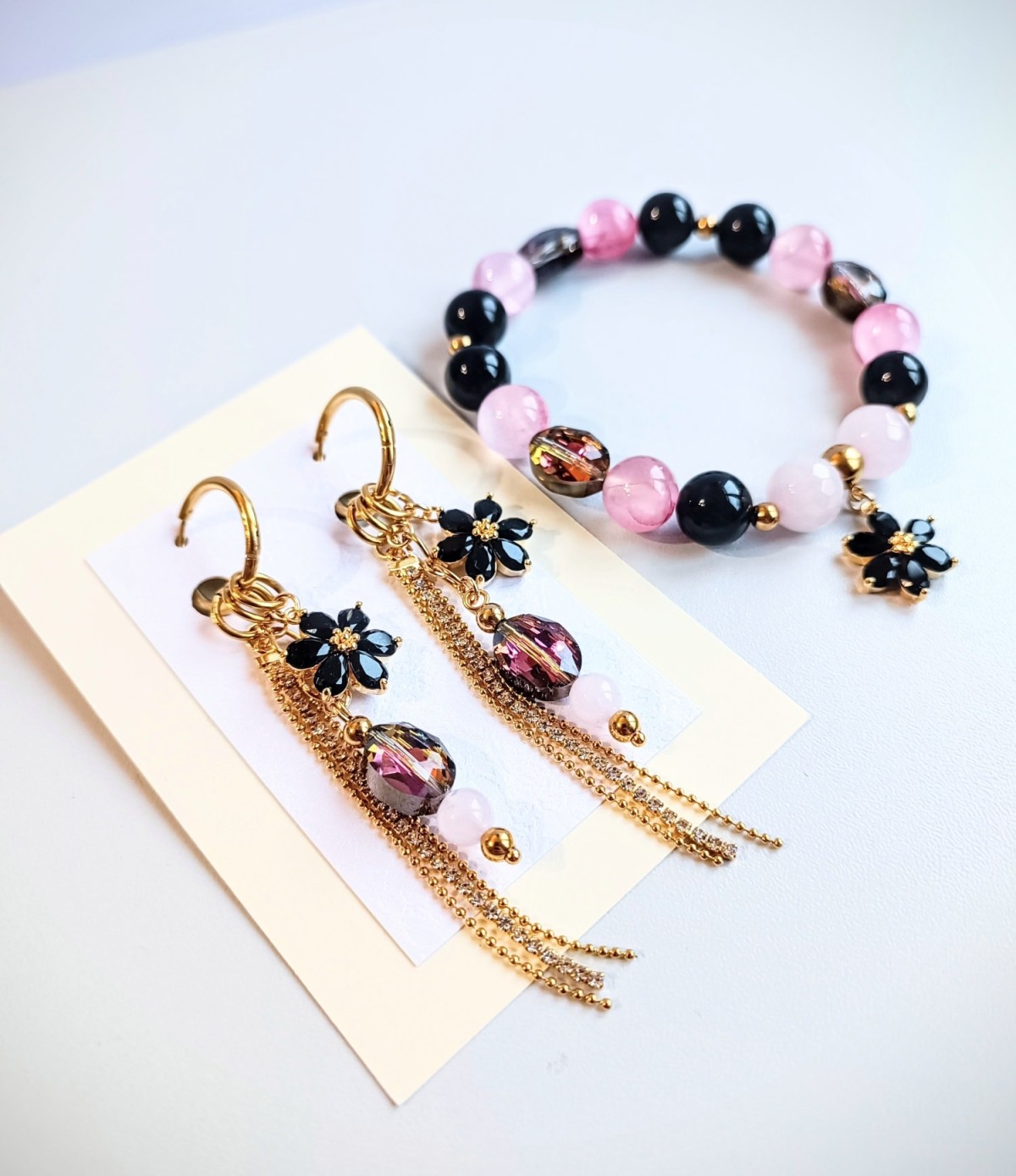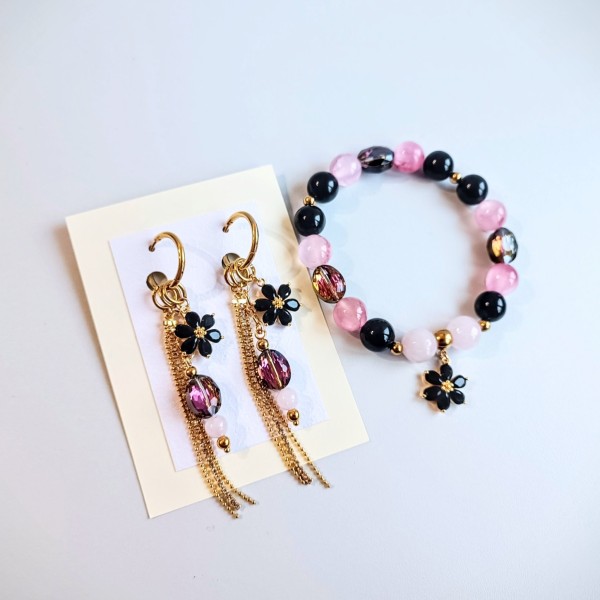 Auskari ar ķēdīti un aproce puķīti