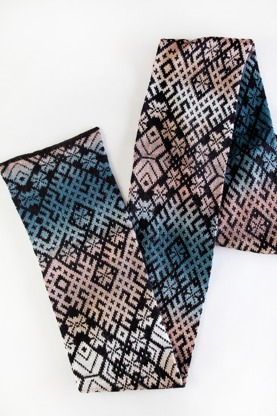 Latvisku ornamentu tautiska šalle no mīkstas dzijas