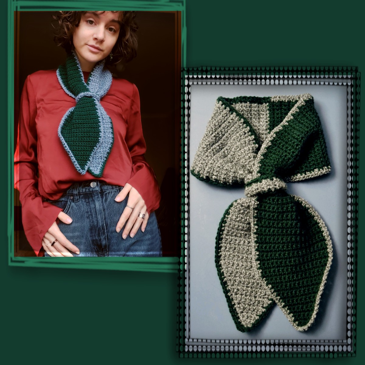 divkrāsaina tamborēta šalle, kas atgādina kaklsaiti. ''gumija'', kas aptver šalli ir savelkama – kādā augstumā vēlies!