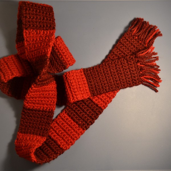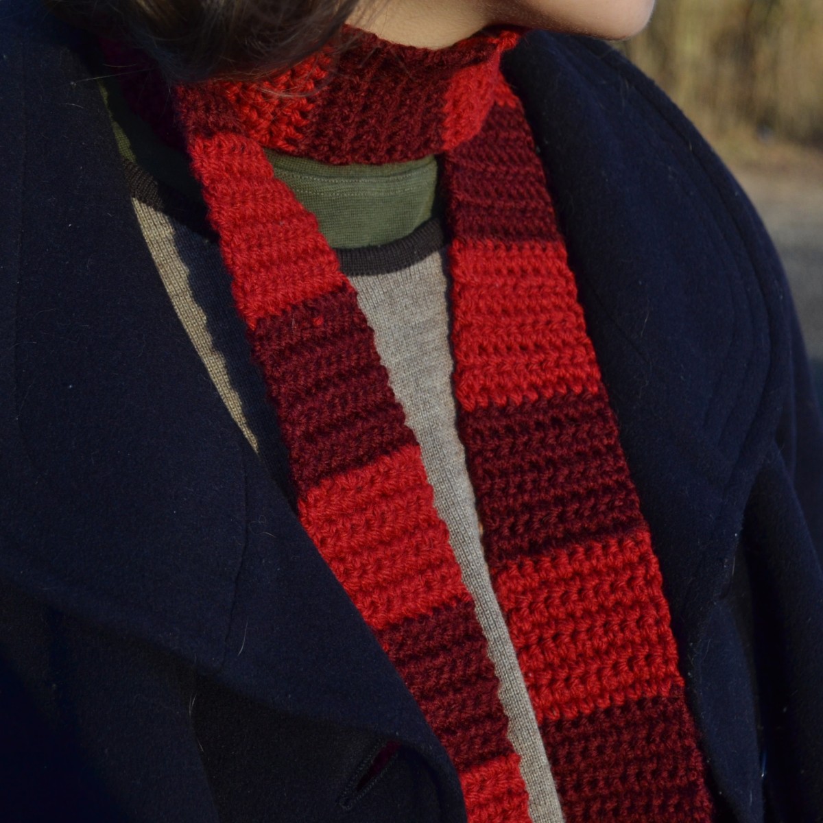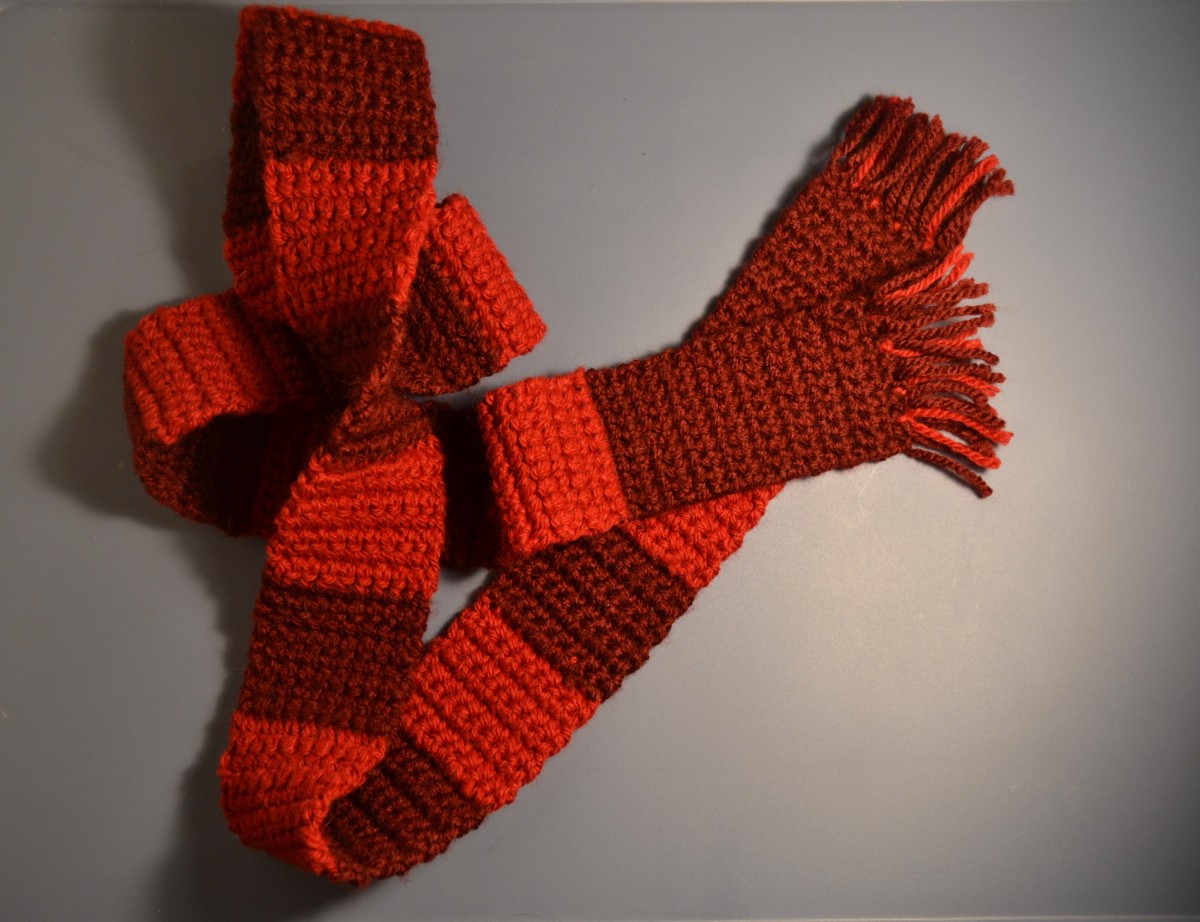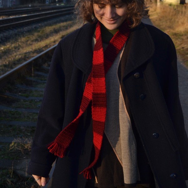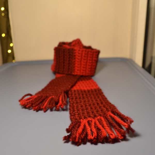 sarkanā divkrāsainā pusvilnas mini šallīte ir gana vienkārša, un tomēr šarmanta.
