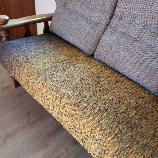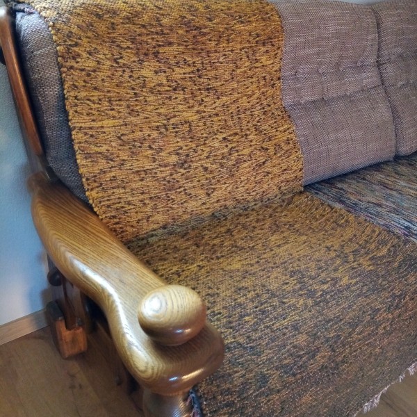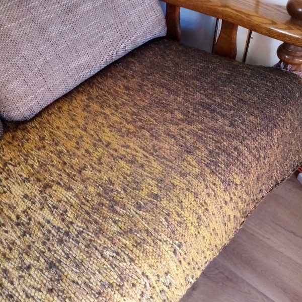 No krāsainiem diegiem un efektdzijas stellēs austs dīvāna vai krēsla pārklājs 1,92 m x 0,73 m. Var klāt arī uz grīdas kā grīdas celiņu. Viegli tīrīt, var saudzīgi mazgāt.