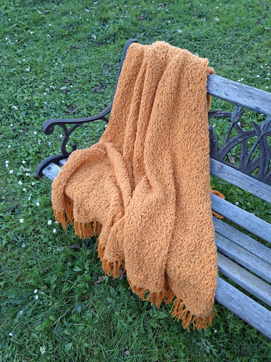 Ar rokām adīta vilnas sega. Izmērs 1,6 x 1,35m. Dzijas sastāvā augstvērtīga vilnas dzija (merino, alpaka, kazlēns) 8%poliamīds.
