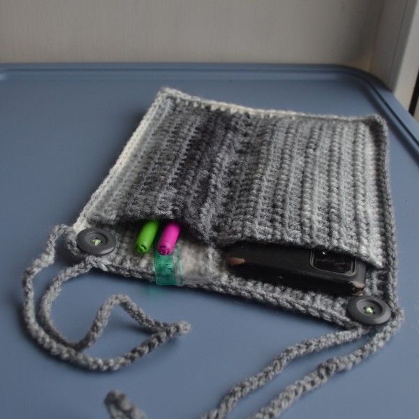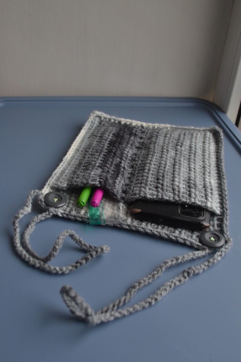melnbalti pelēka ‘‘iekškabatiņa’’, ko vari ievietot auduma maisiņā. palīdz uzglabāt dažādus mazos nieciņus – lūpu balzāmu, zīmuļus, arī telefonu –, lai tie nepazūd maisiņa apakšā!