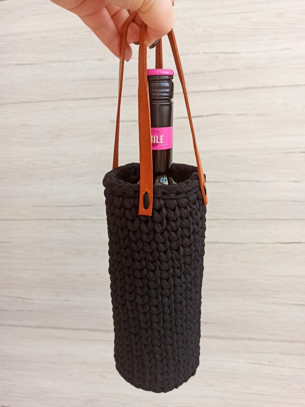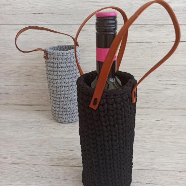 Tamborēta dāvanu somiņa vīna pudelei.