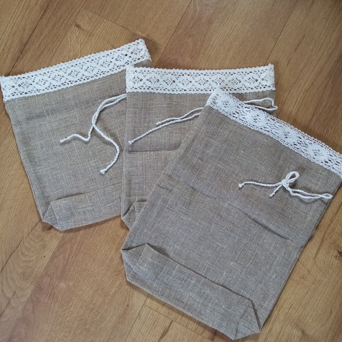 No balta un pelēka linu auduma šūti dāvanu maisiņi ar kokvilnas mežģīnes apdari un sasienamu šņorīti. Izmērs baltajiem 23 x 33 cm, pelēkajiem 30 x 35 cm. Ir vēl citi auduma maisiņi, sazinoties aizsūtīšu foto. #lina_maisini #auduma_maisini #davanu_maisini #auduma_davanu_maisini